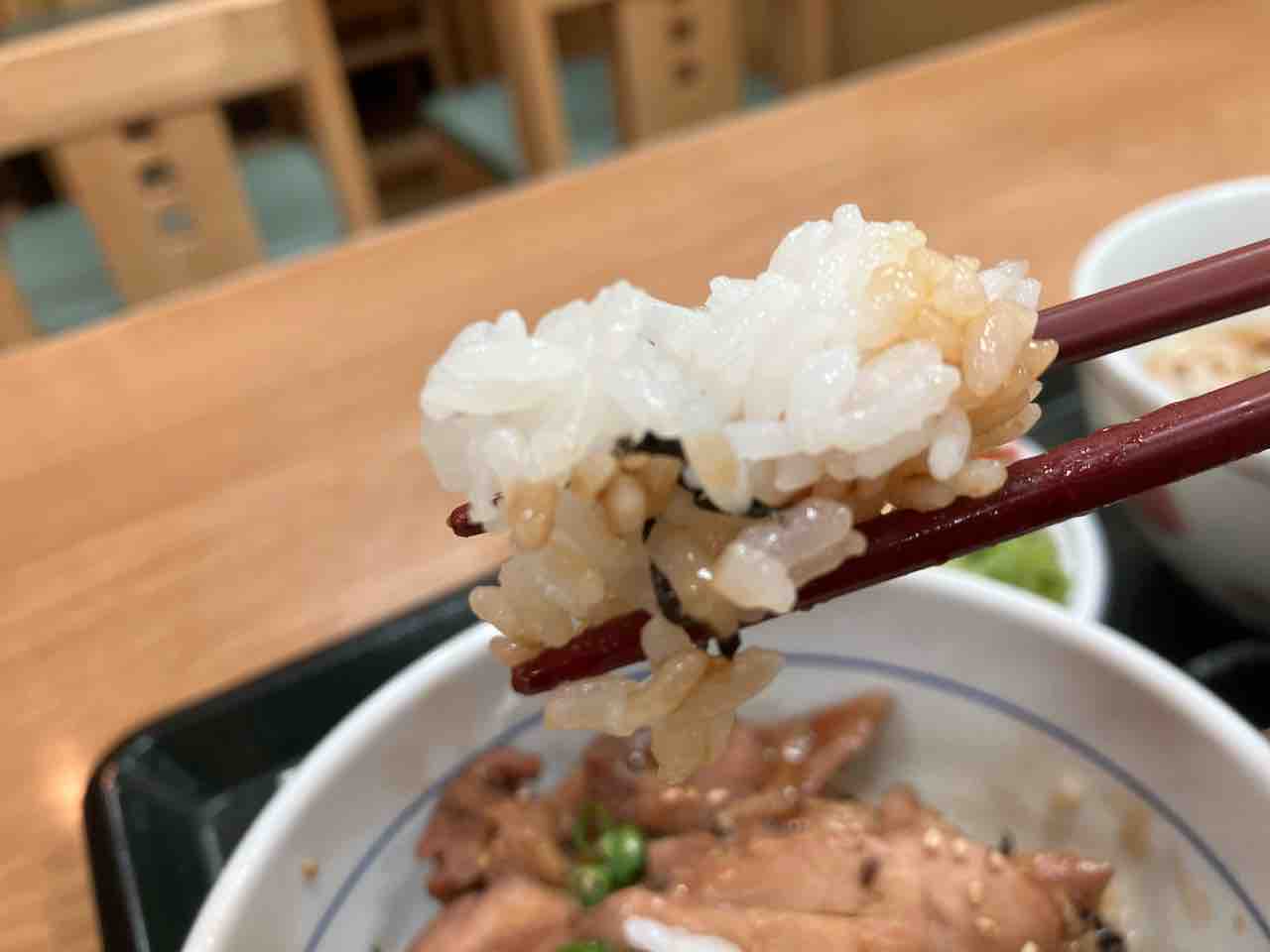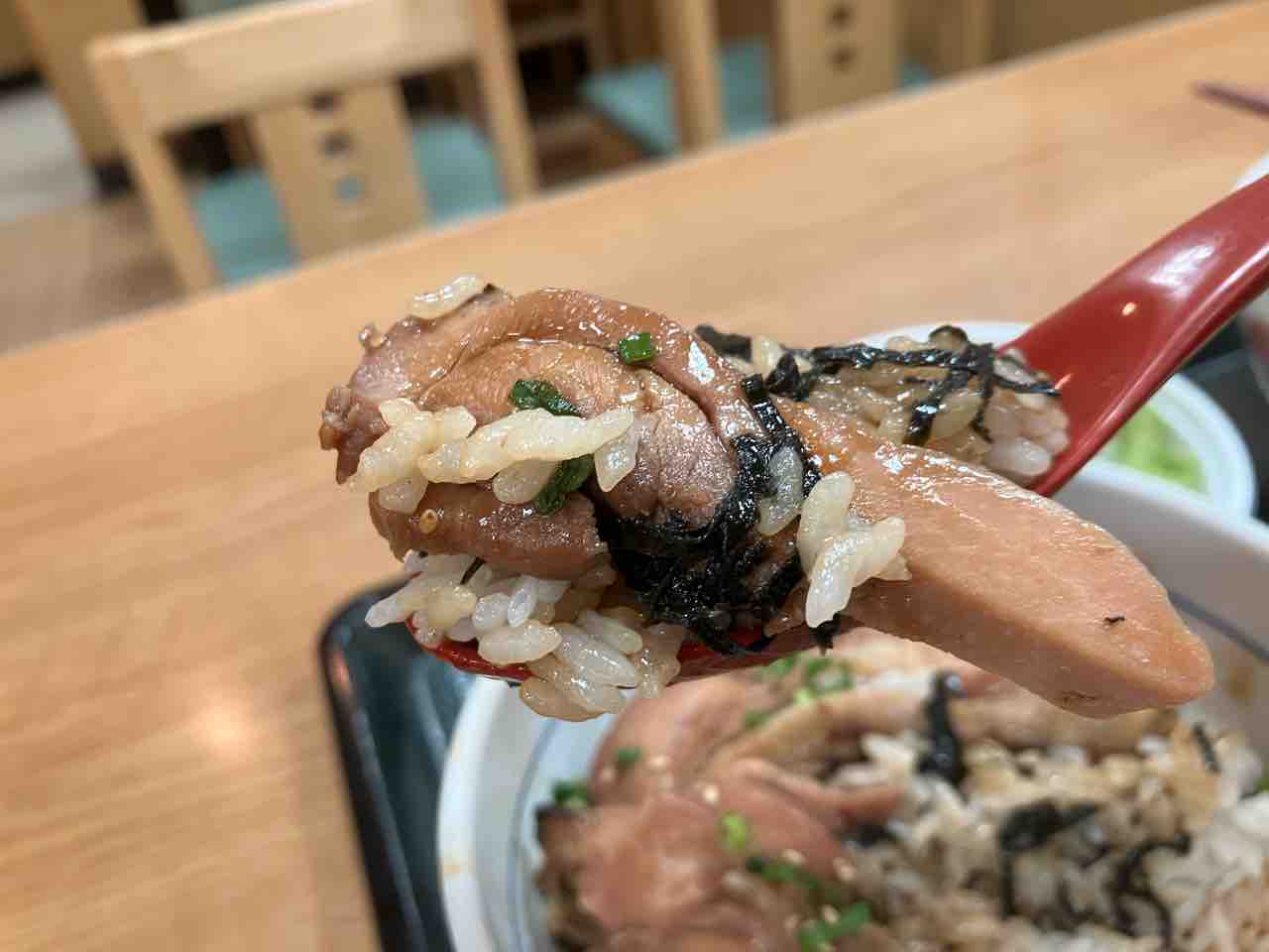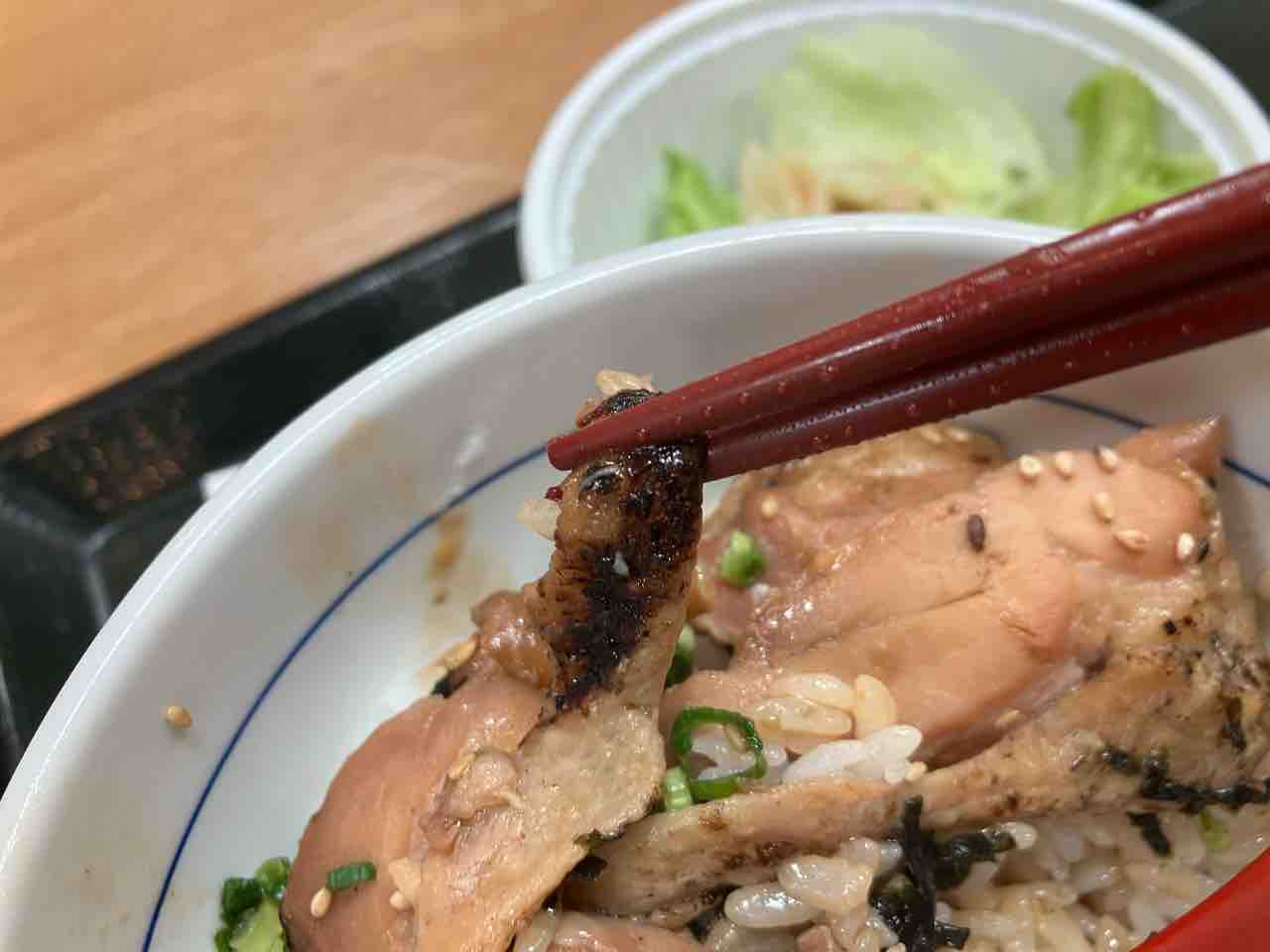 その後鶏肉をパクリと食べると… 鶏肉は柔らかく甘塩っぱい味付けで美味い