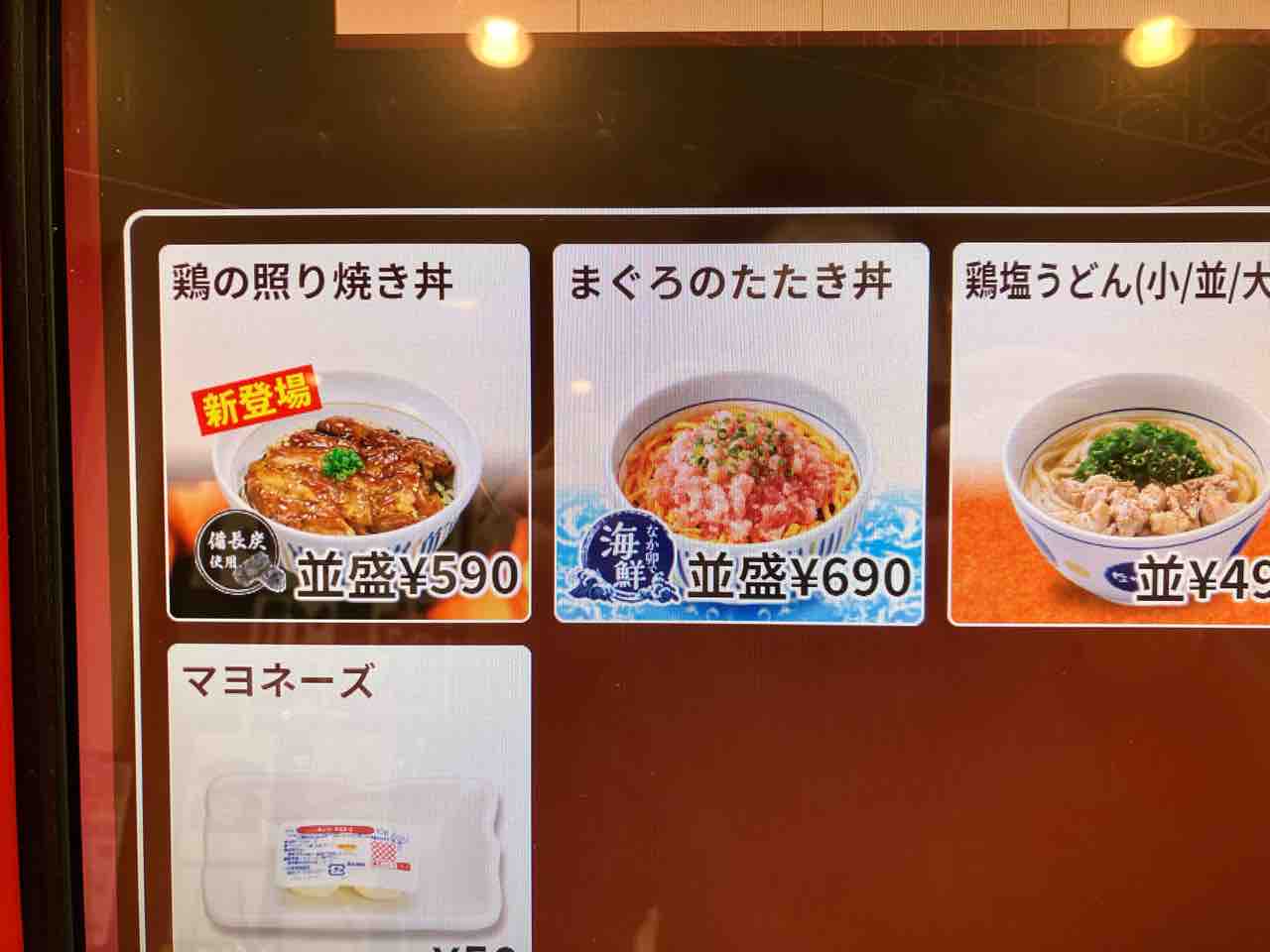 入店し タッチパネルのメニュー表から 鶏の照り焼き丼 並盛(¥590)と…
