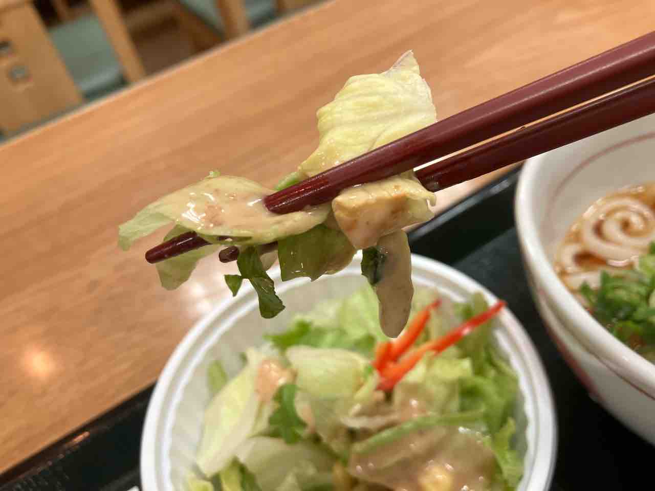 肉ばかり食べてはいけませんのでサラダも胡麻ドレッシングで頂きます