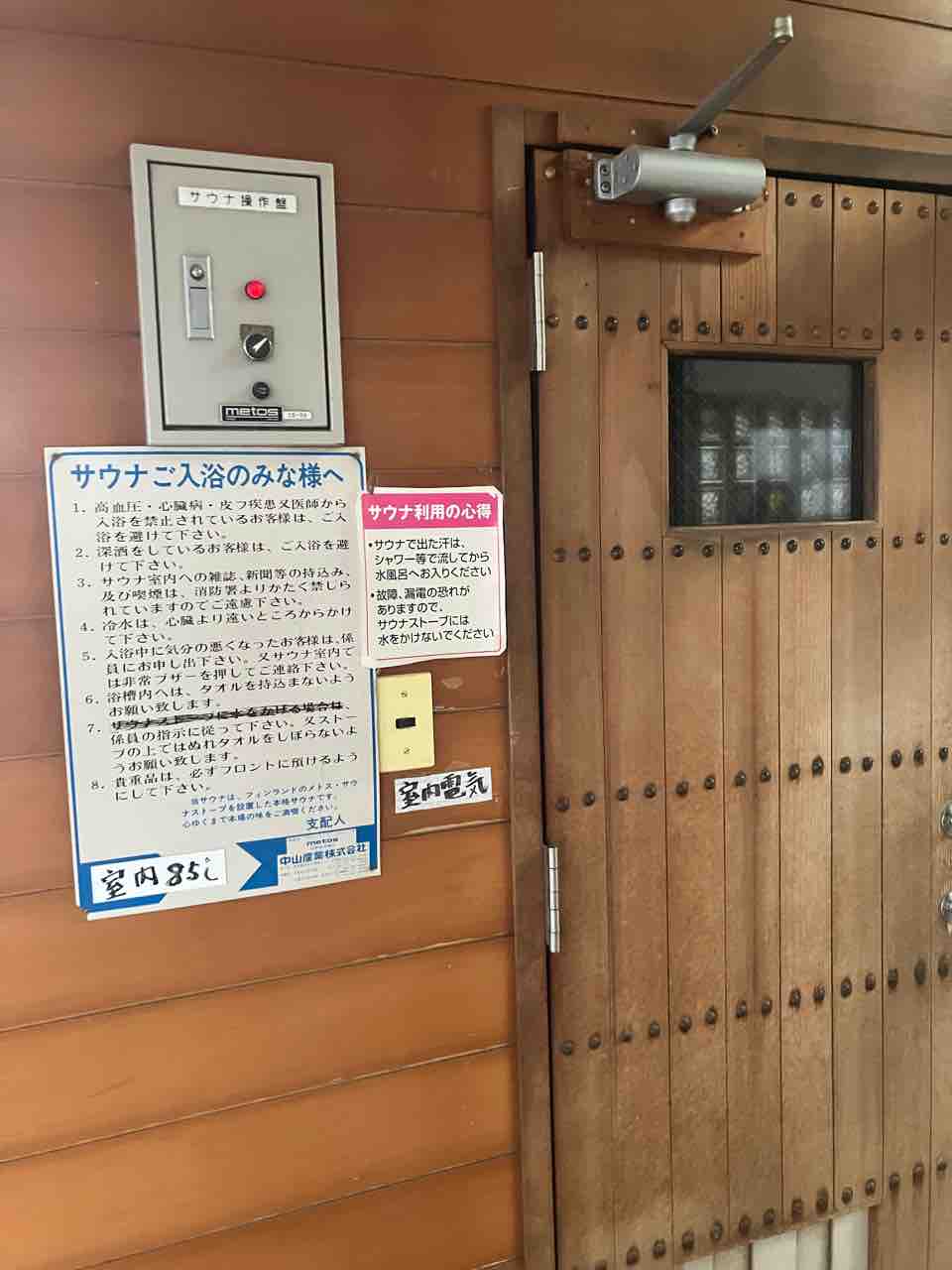 浴場外 脱衣所にサウナがあるので身体の水分を拭き取り入ってみます•