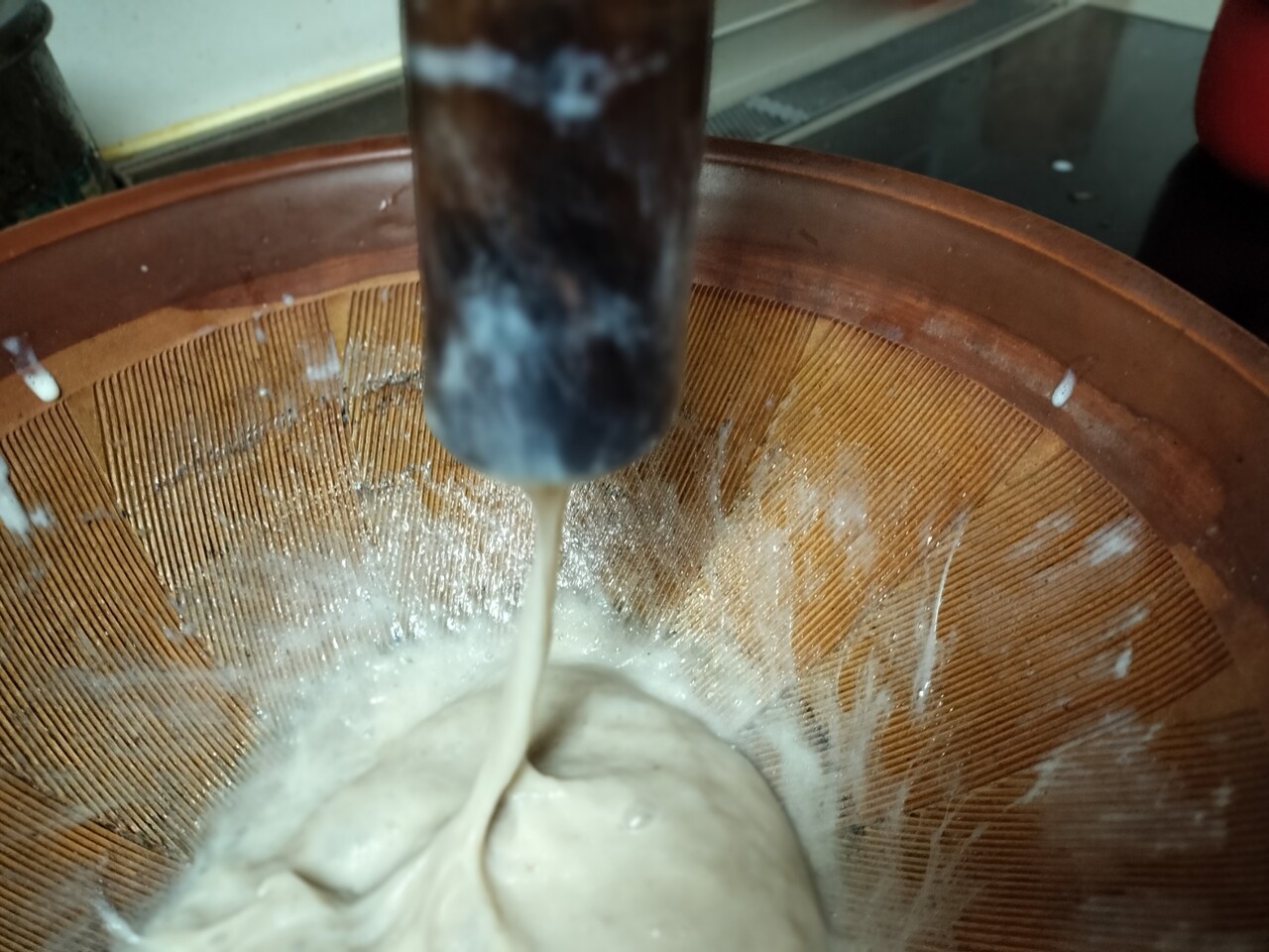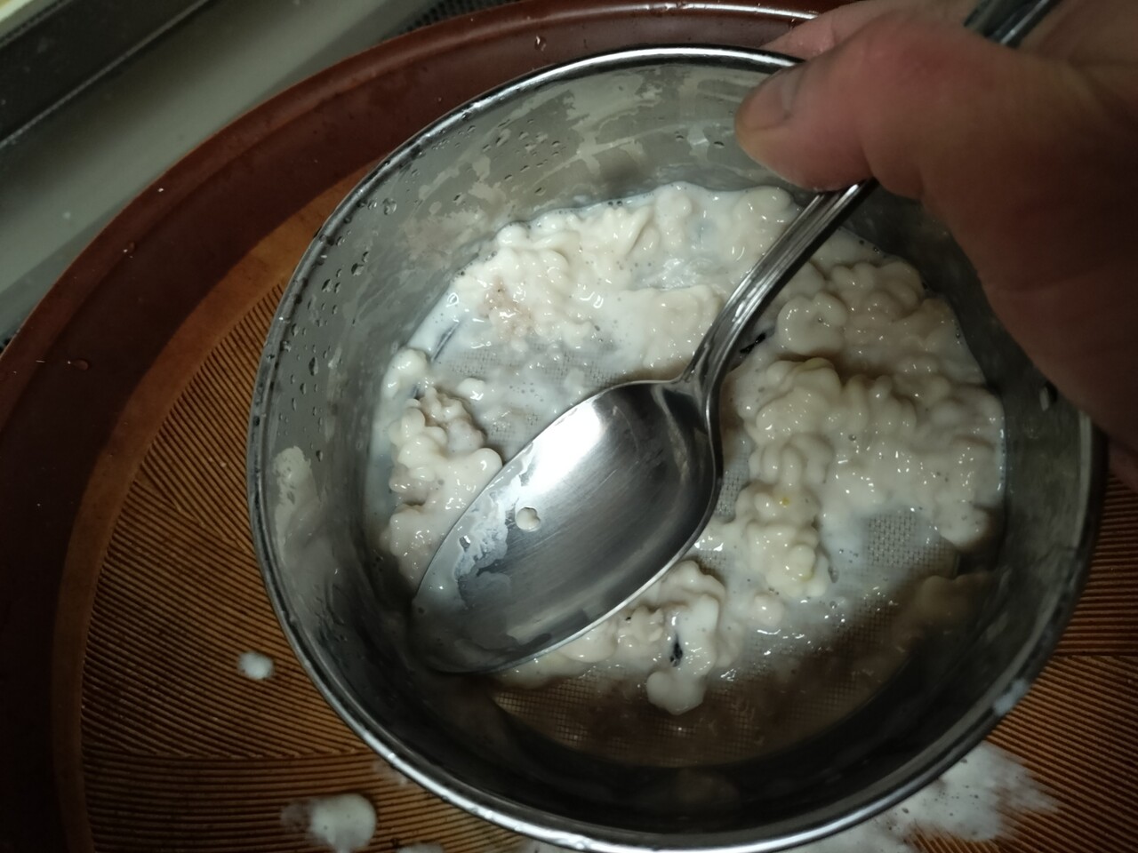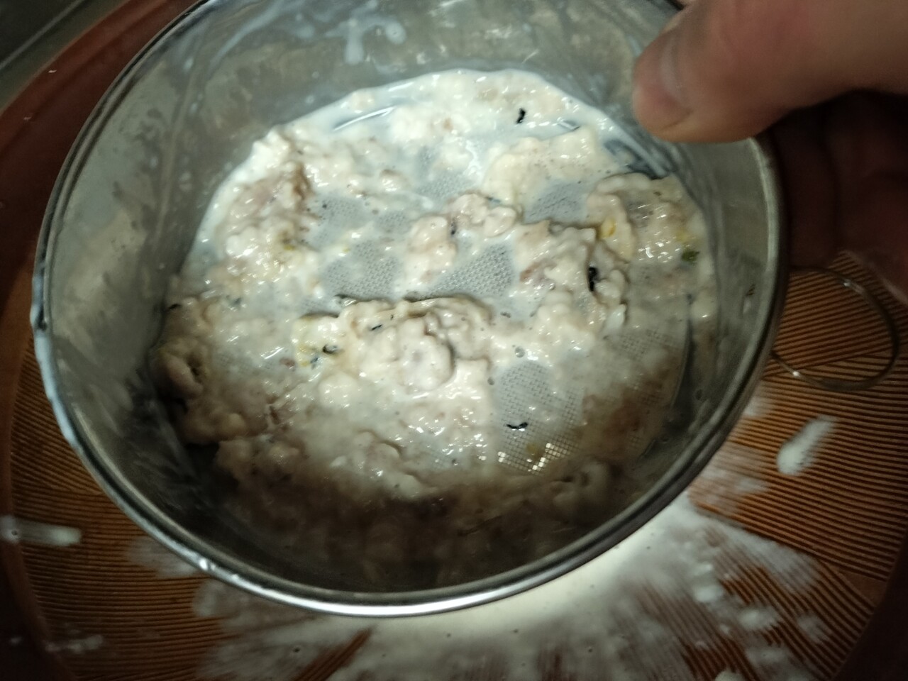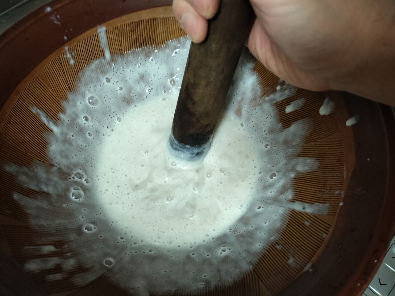 助たちの 濾された液体がすり鉢に溜まり