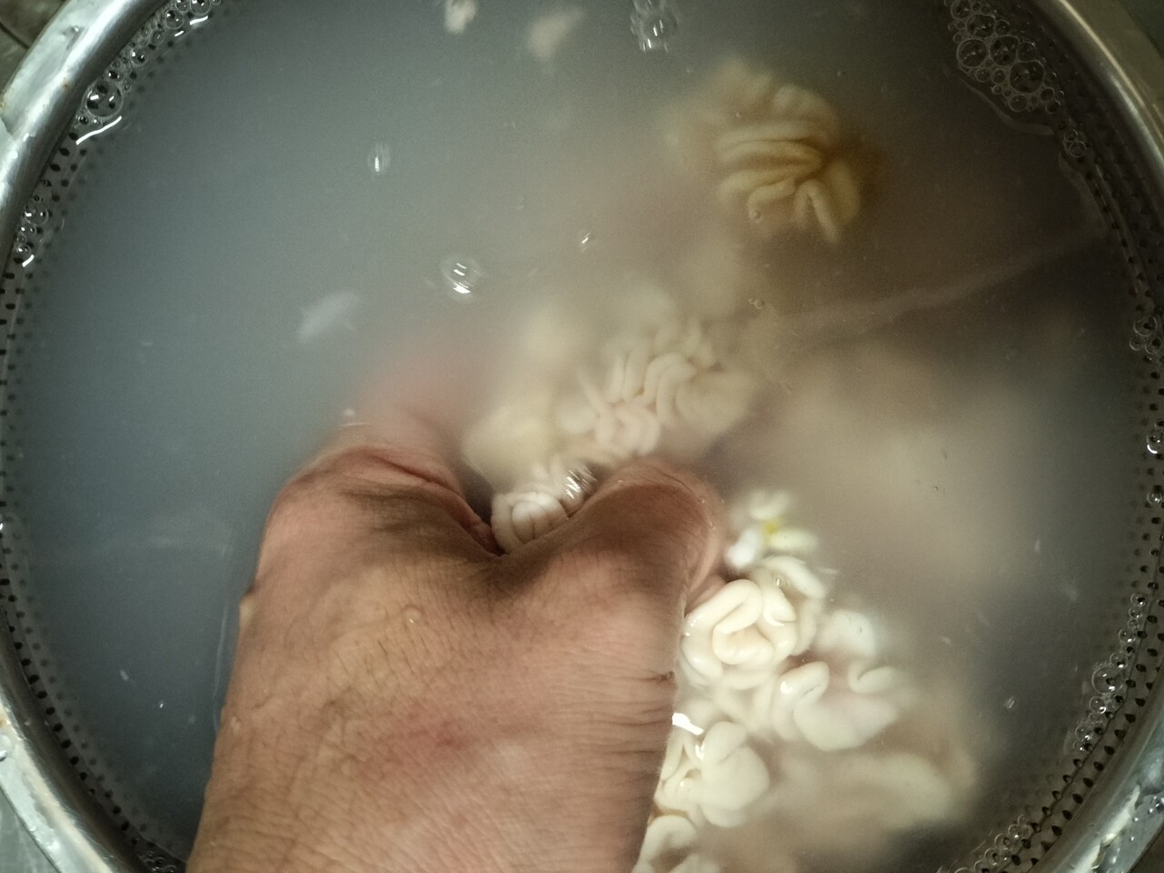 冷水で洗っていく… 洗う洗う…