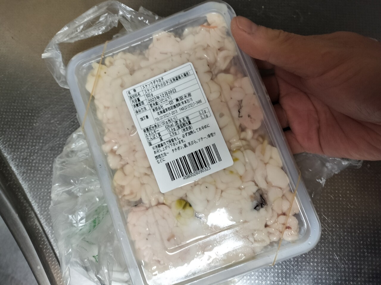 先ずは一印高田水産さんに赴き スケソウダラの白子(助たち)500g ¥500をGET