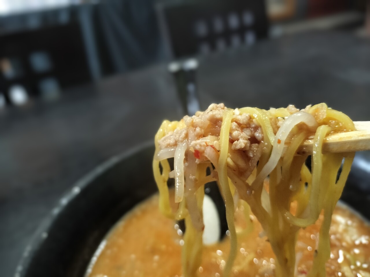 スープを頂くと胡麻の風味や挽肉の肉肉しさや 甘辛い味わいのスープが実に美味い
