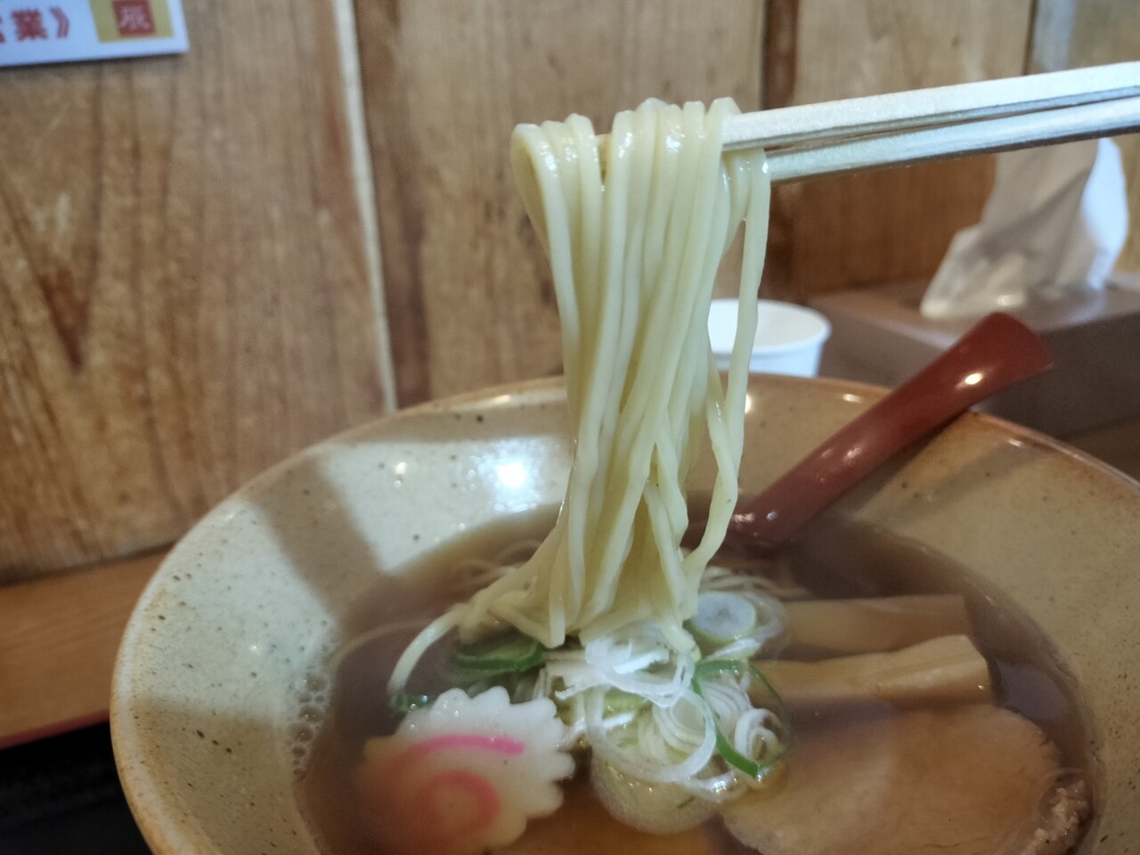スープを口に含むと ガツンとパンチのある味わいではないのですが 魚介系の出汁が口の中に広がり 実に奥深い…