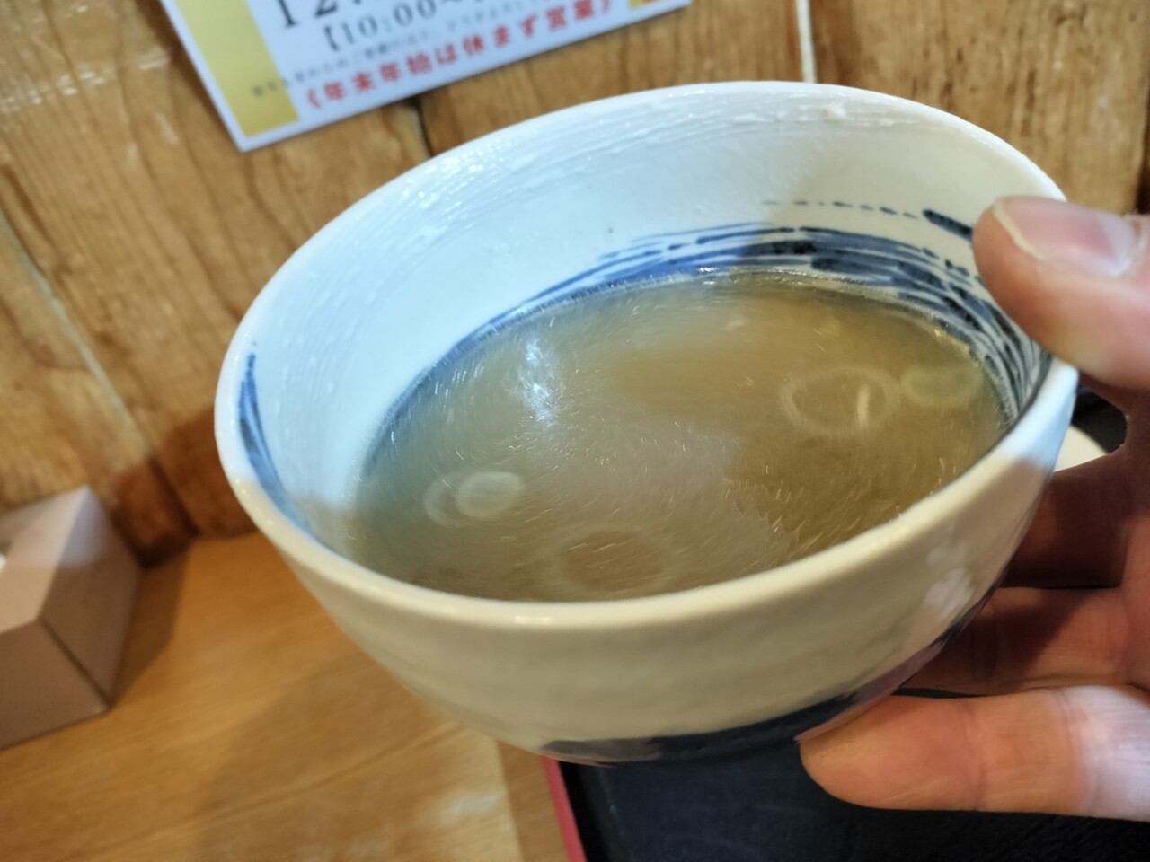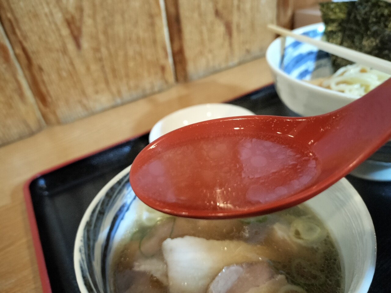 目を瞑りながらスープを頂くとイカやサバの風味を感じられる美味いスープ