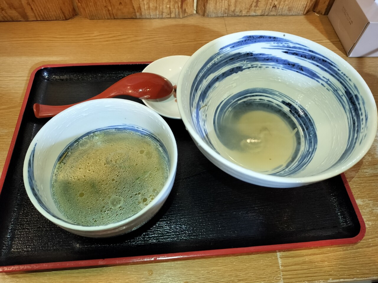 最初に イカとサバ出汁の白醤油中華そばが運ばれてきました!ちなみに食べ終えてから昆布水つけ麺は提供してもらいます