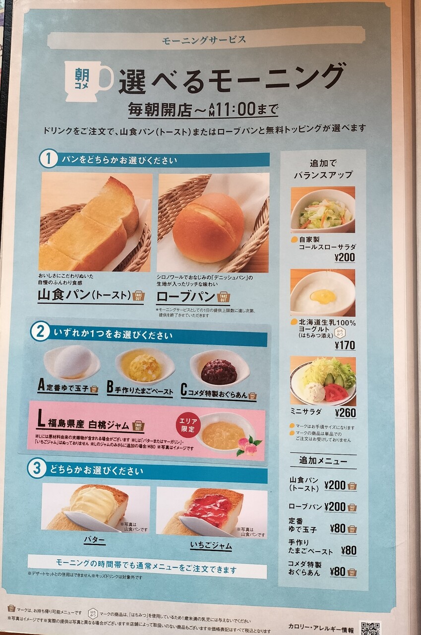 選べるモーニングは 山食パン&コメダ特製おぐらあん&バター です