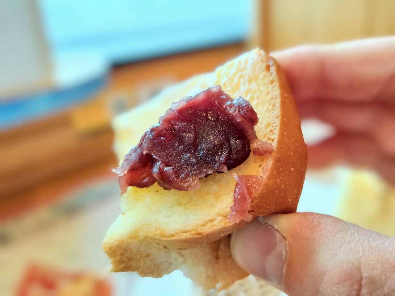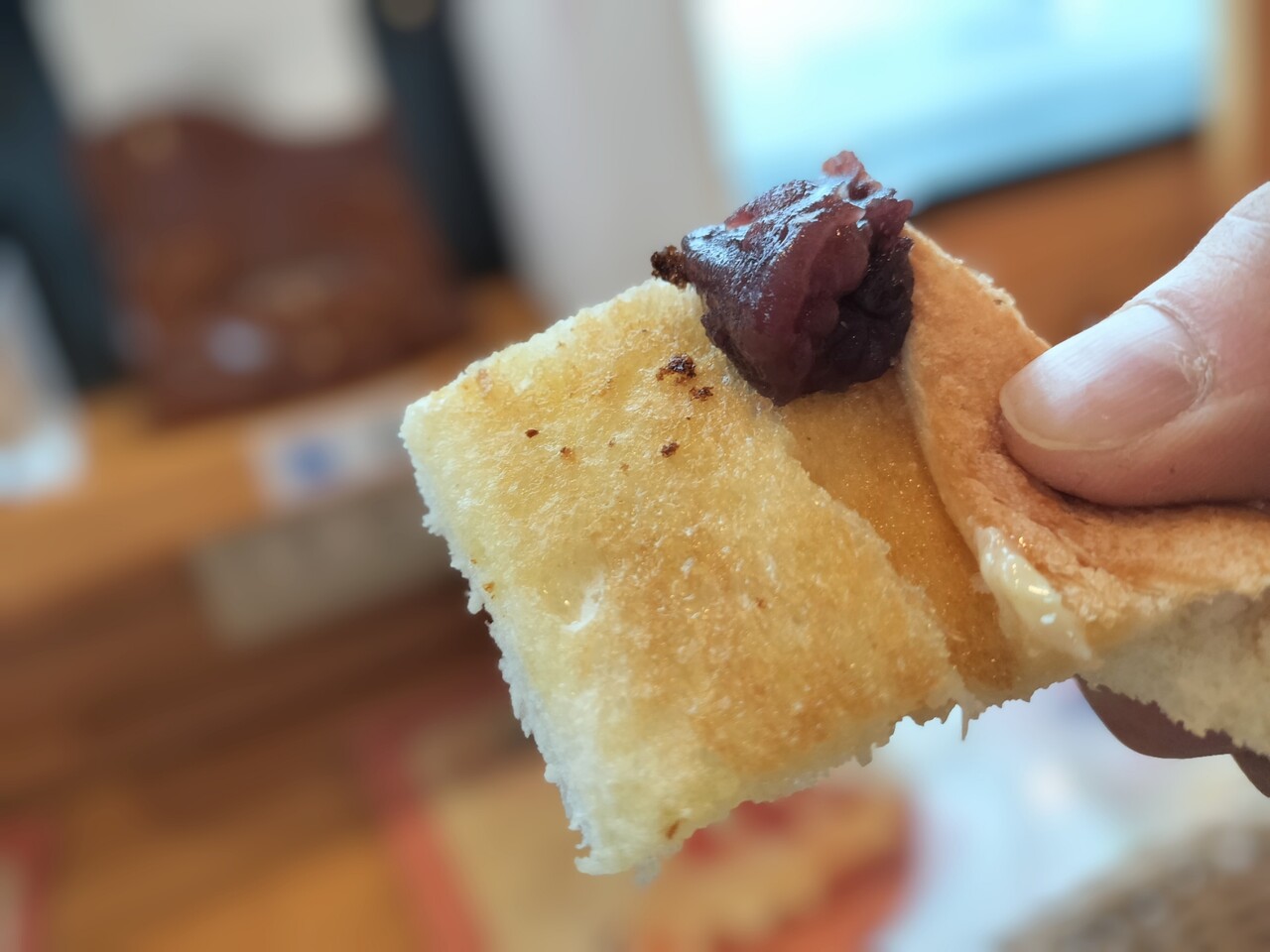 それに こめだ特製おぐらあんを乗せて パクリと食べると…