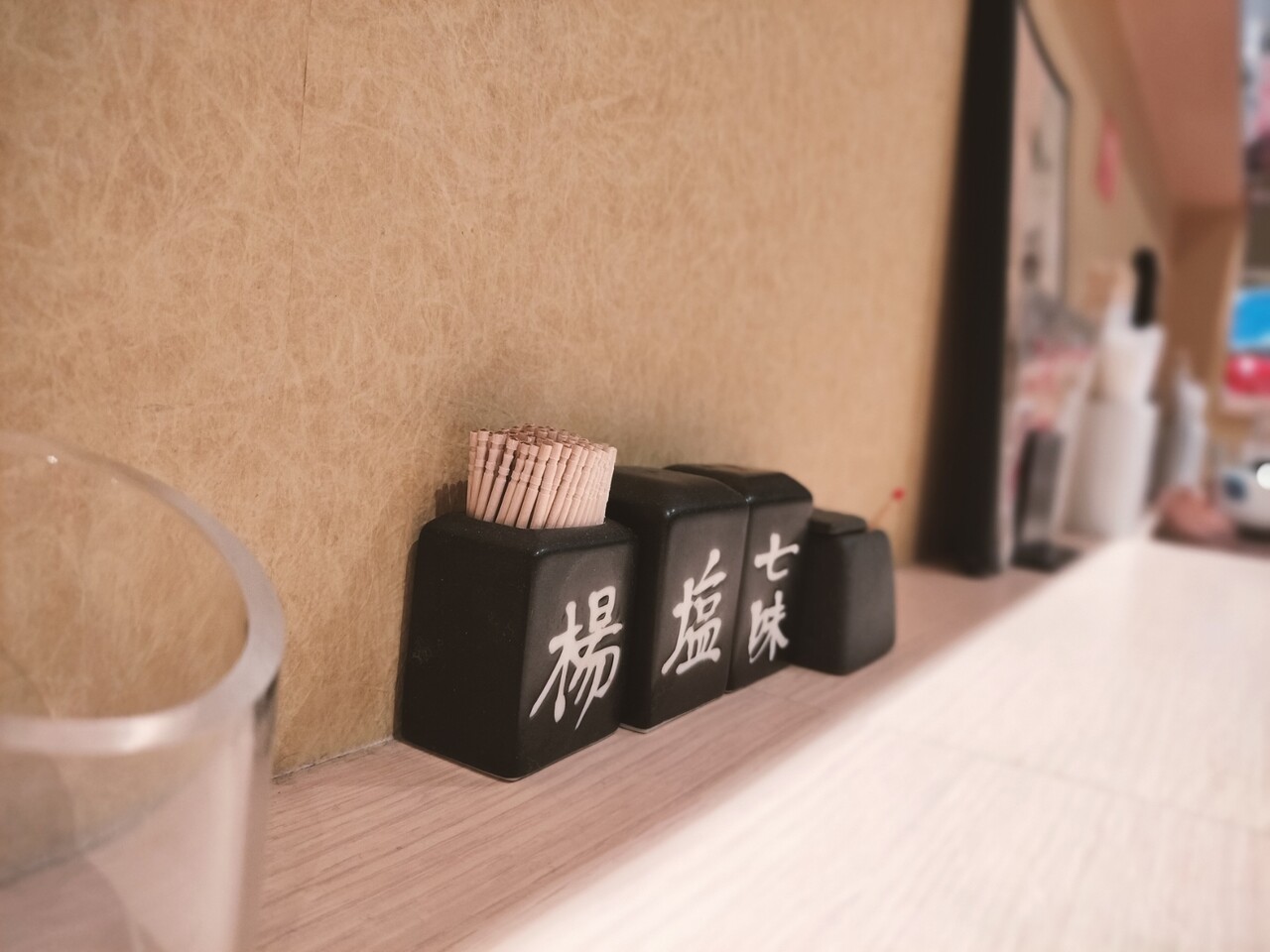 テーブル周りを見ると薬味があり
