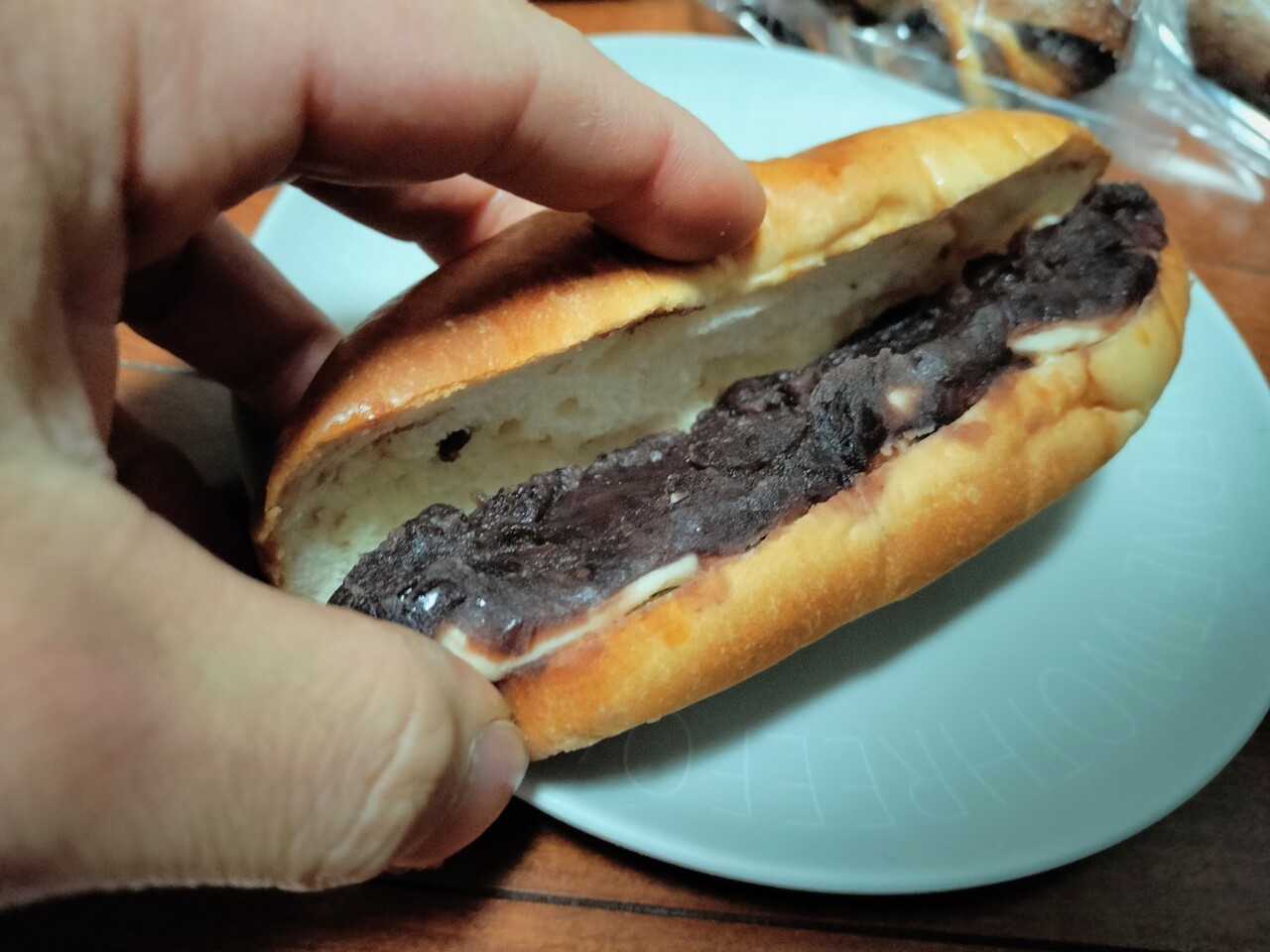 中を見てみると バターの下に餡子がびっしり詰まっており食べてみると 餡子とバターの最高な組み合わせに このコッペパンが本当によく合い美味いね!