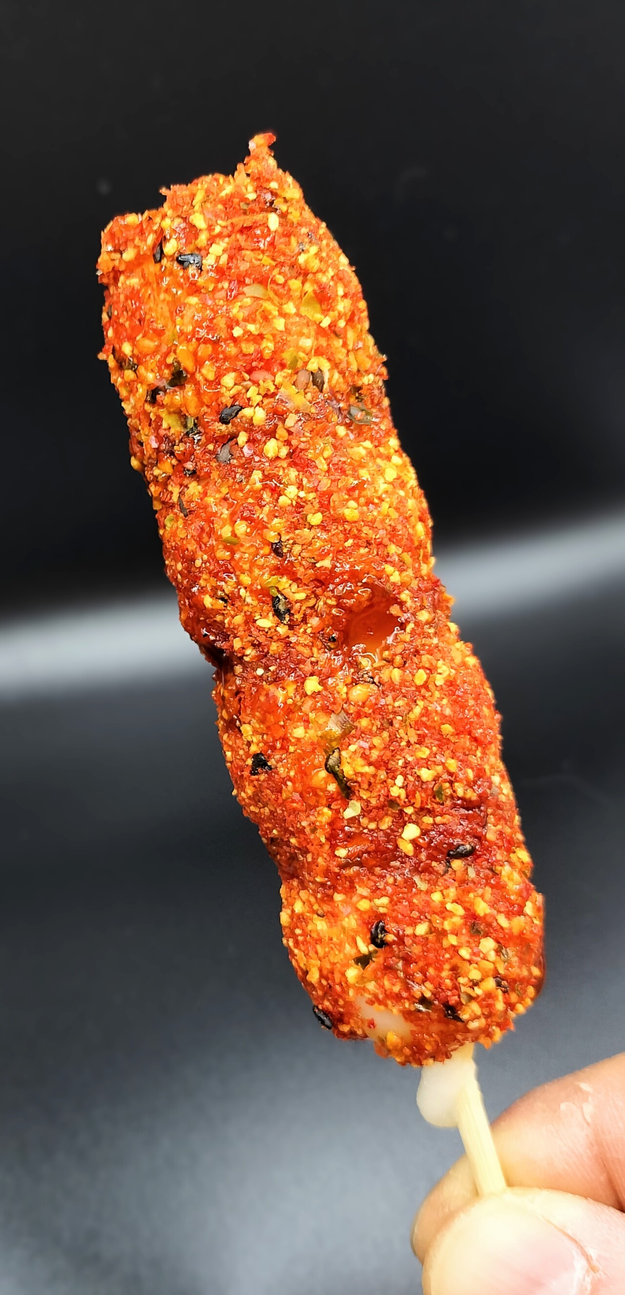 七味をポロポロ溢しながら食べると超絶辛いんですけど その奥底にはみたらしの甘みがあり…辛いの好きな人には超ドストライクでハマる団子かも!