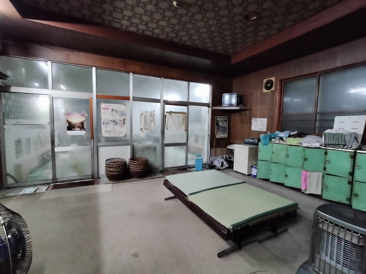 脱衣所はまぁまぁ広く ロッカー等はありますがほぼ機能せず