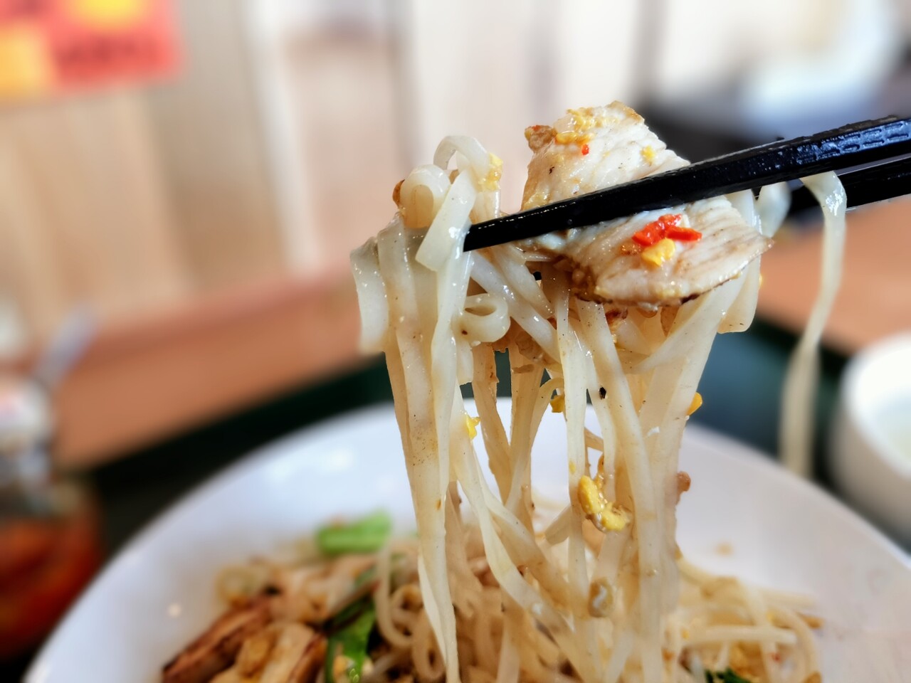 ナンプラー(魚醤)独自のクセはあるものの 旨みがあり麺は米麺は平麺でモチモチっとしていて美味っ!