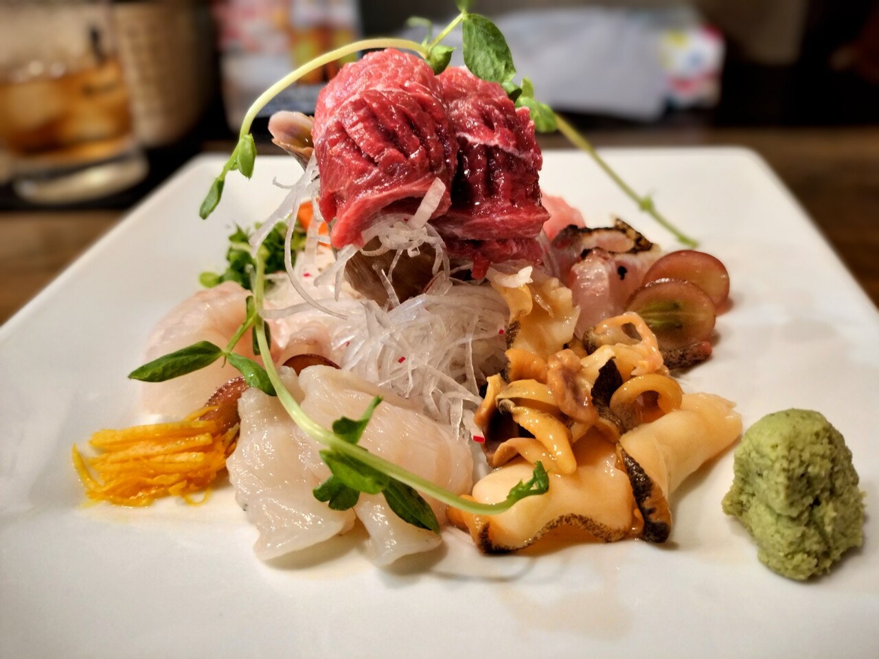 そこには 刺身の山が聳えておりました…