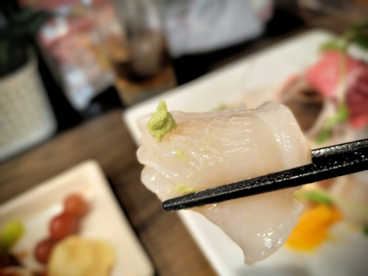 ですが先に刺身を食べたいので イカを食べます
