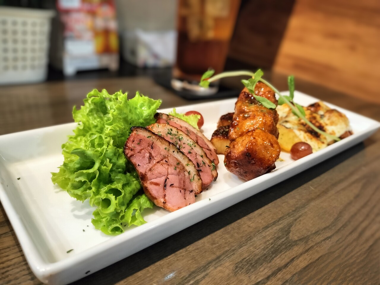 内容は 合鴨ロースの炙り、つくね照り焼き etc…
