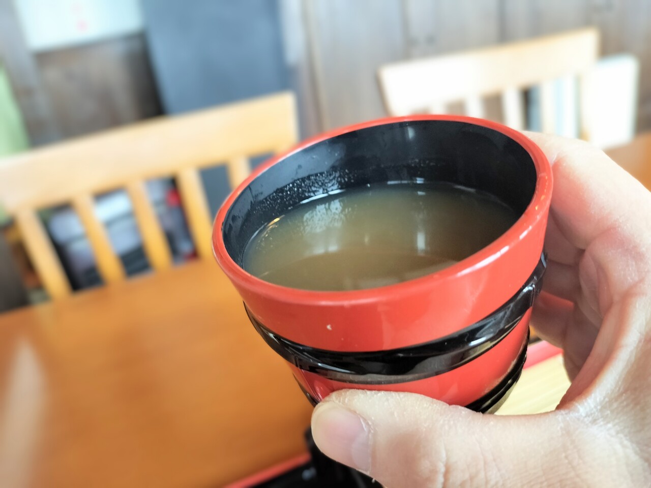 中を見てみると白濁とした蕎麦湯でとろみがあります