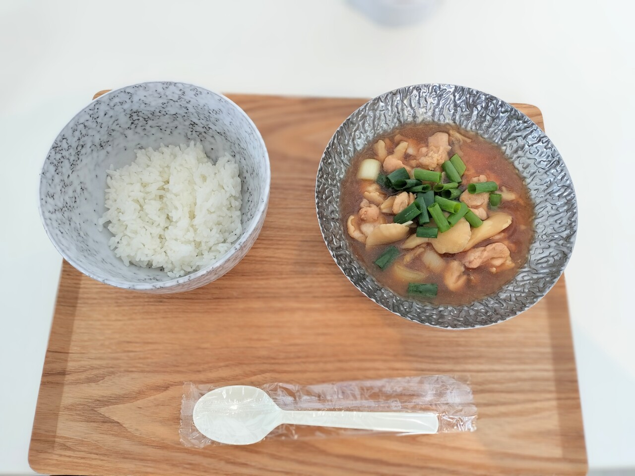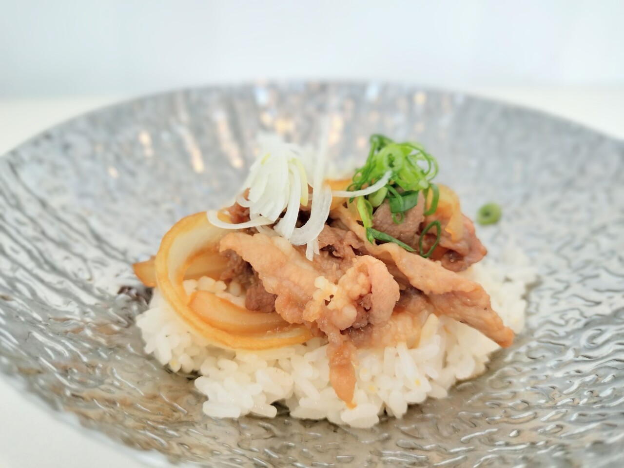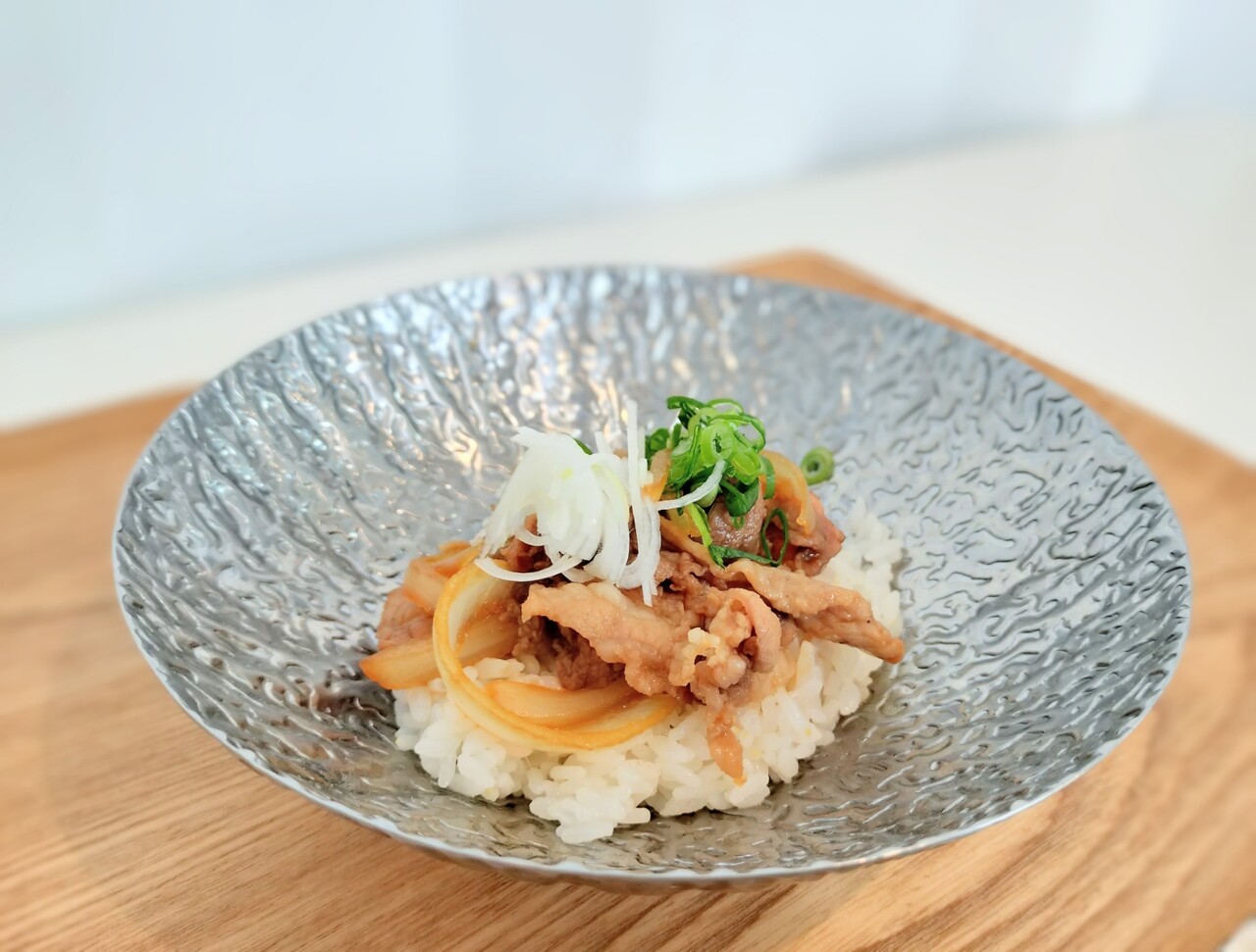 作り方は親子丼の素を適量いれ玉ねぎを煮る、そして豚肉投入し良い感じに煮えたら 器にご飯を盛りその上に 豚と玉ねぎを親子丼の素で煮詰めたものを乗せ 刻み長ネギ散らせば はい豚丼の完成です