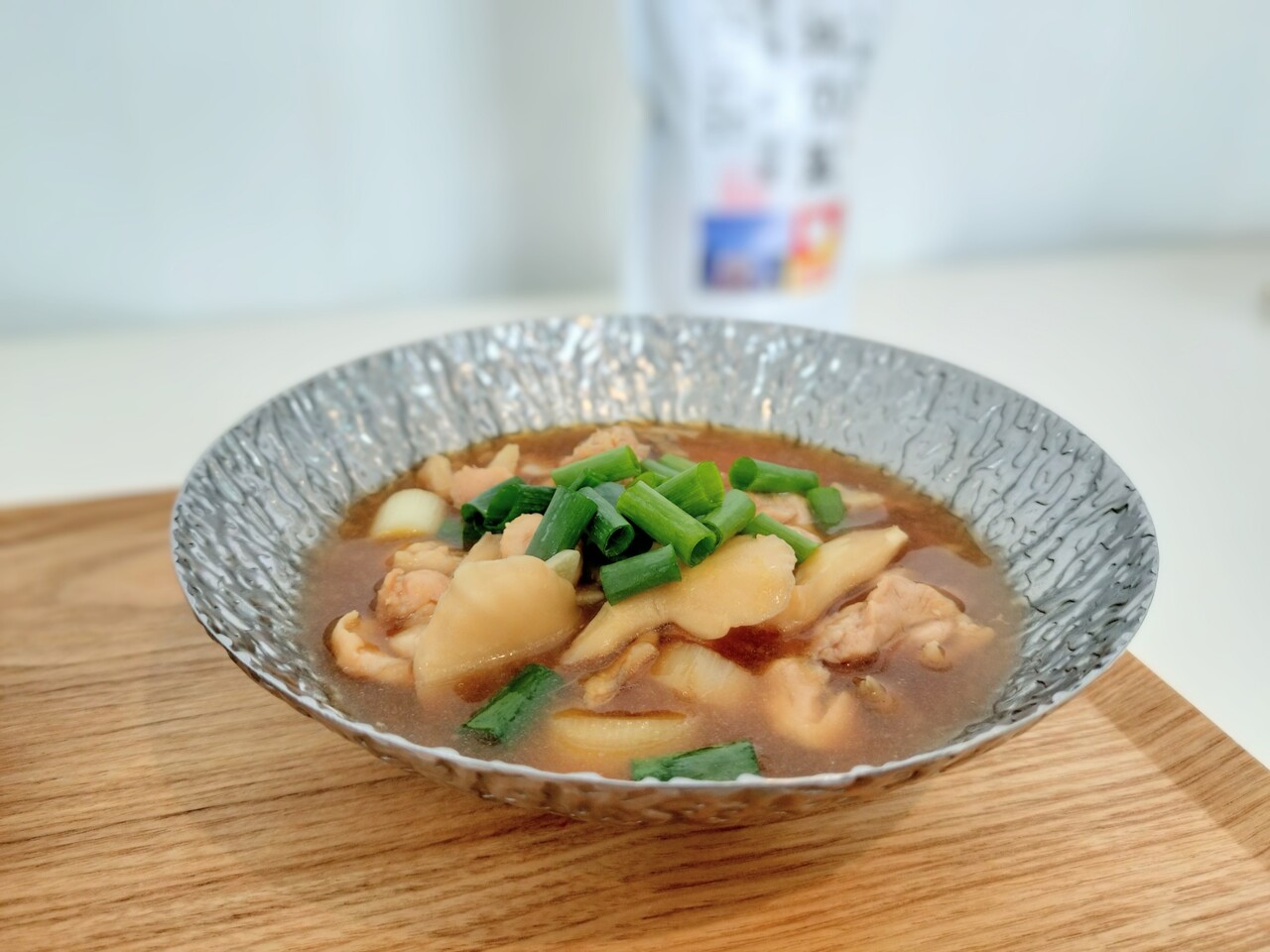 スープを飲んでみると 豚肉の旨み、まいたけの出汁、親子丼の素の味わいが三位一体となり美味いなぁ… 鍋もイケる!