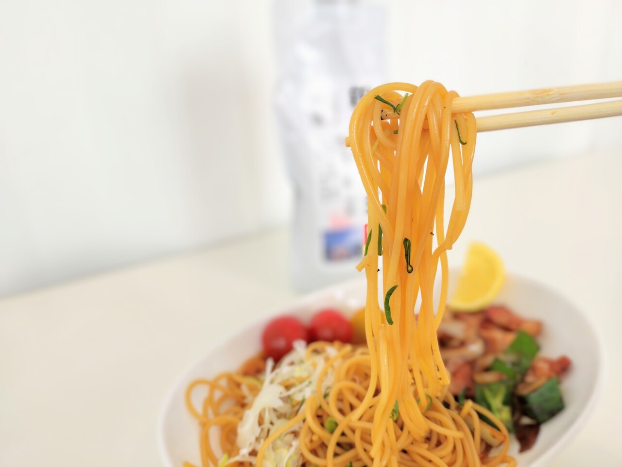 親子丼の素が絡んだパスタを食べても美味っ!