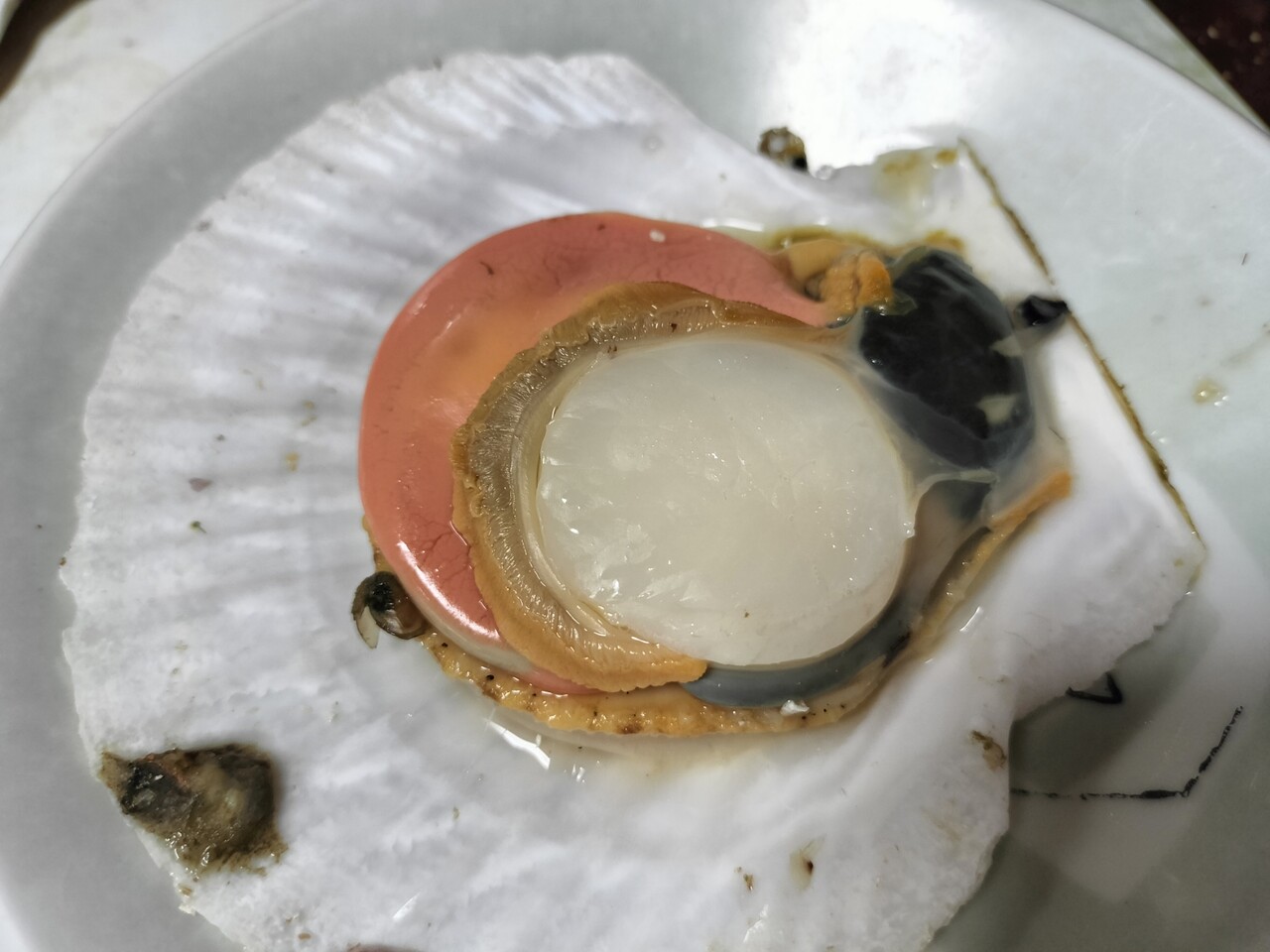 パカっと開いたので中を覗くとこの状態では判りませんが貝柱が大きく、ホタテの生殖器 通称ランも時期なのでかなり大きいのです