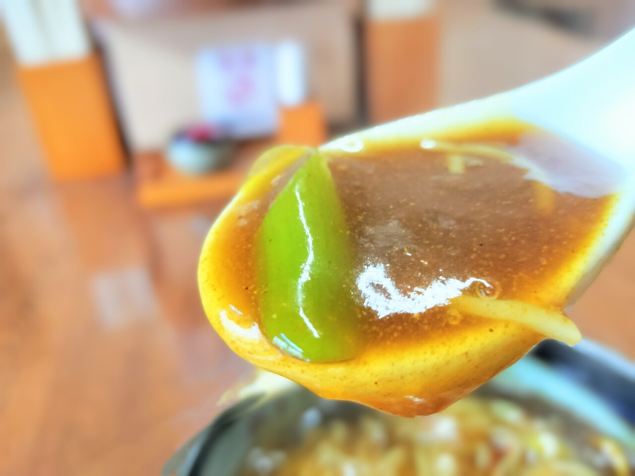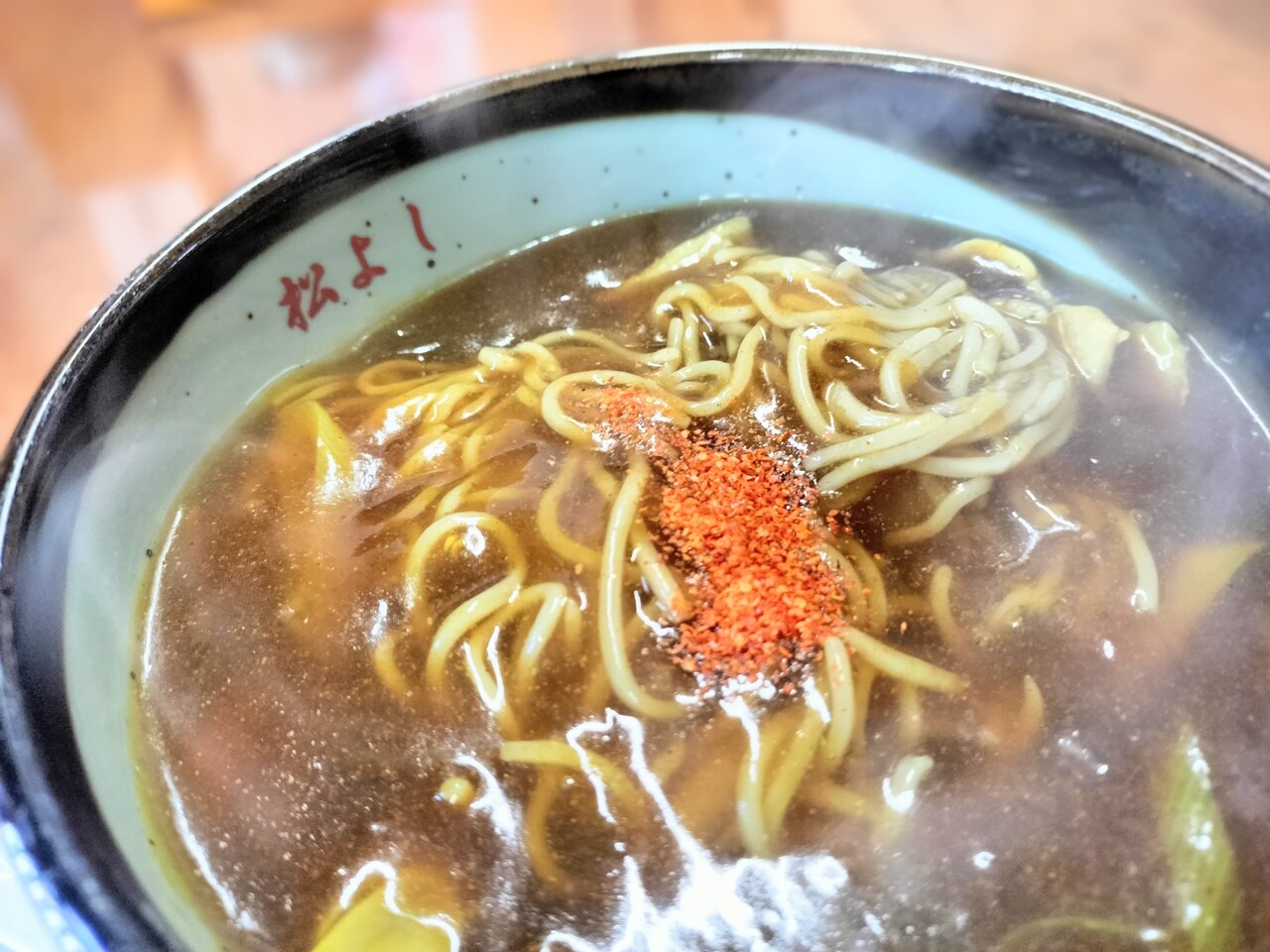 食べていると辛さを少し足したいので七味を投入します