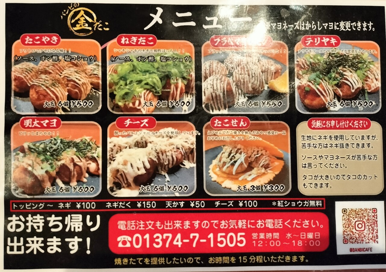 たこ焼き求めに伺いましたのでメニュー表を見てみます