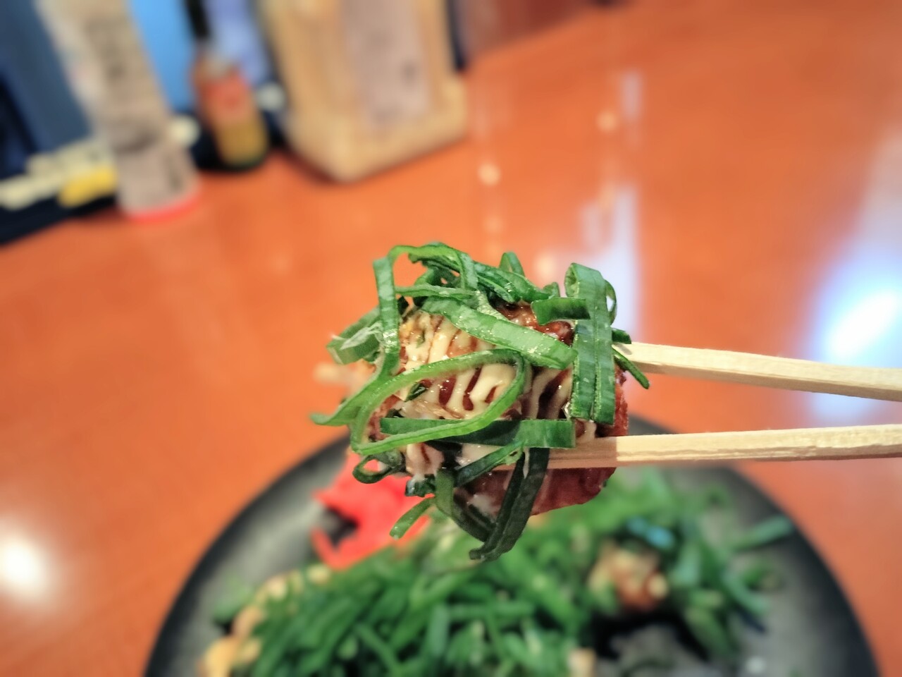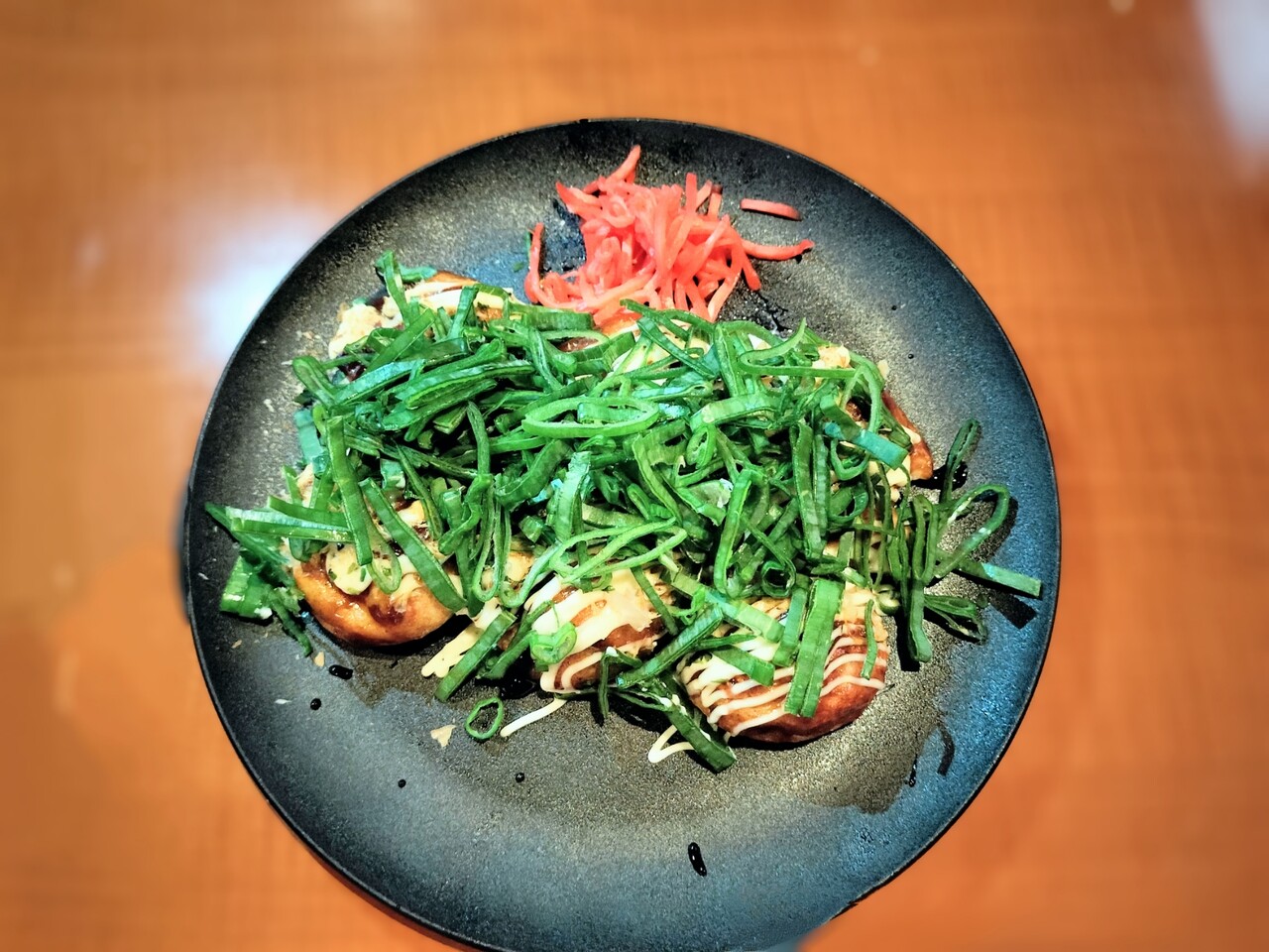 食べると長ネギのシャキシャキとした食感に とろけるたこ焼きが堪らない