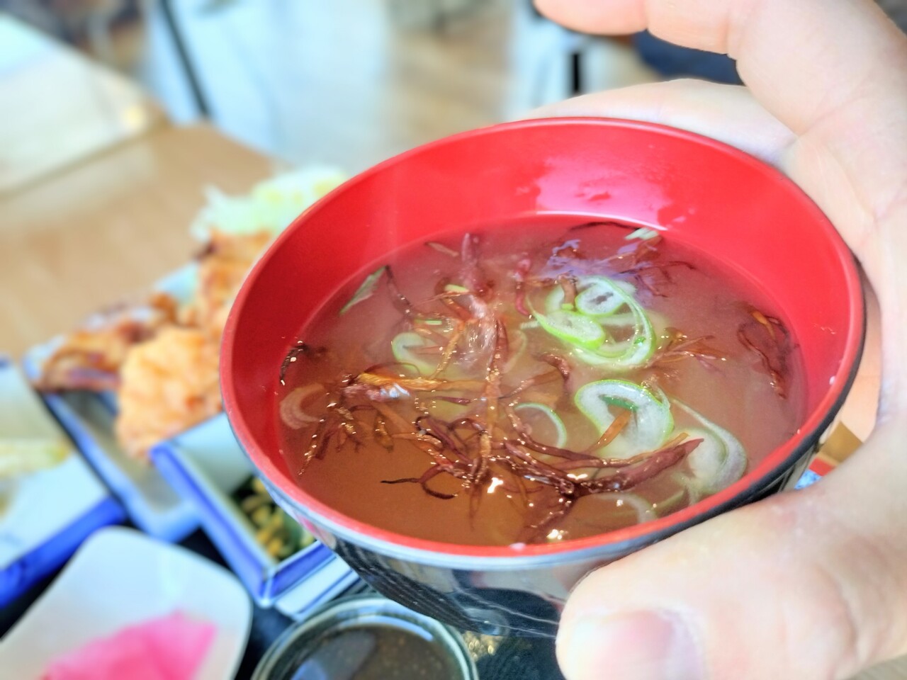 先ずはお味噌汁から頂くと ふのりの香りが良く身体に染み入る味噌汁で美味っ