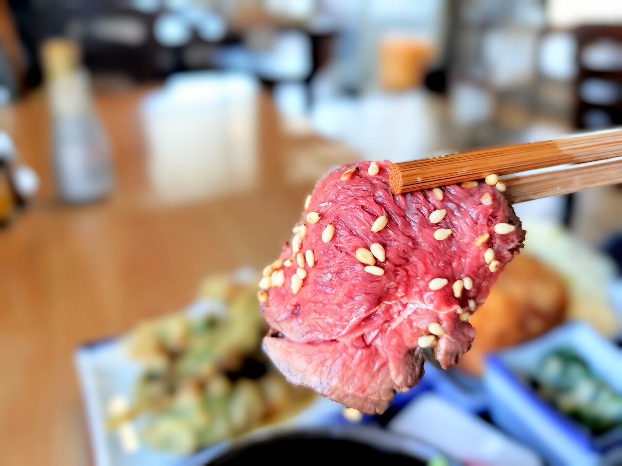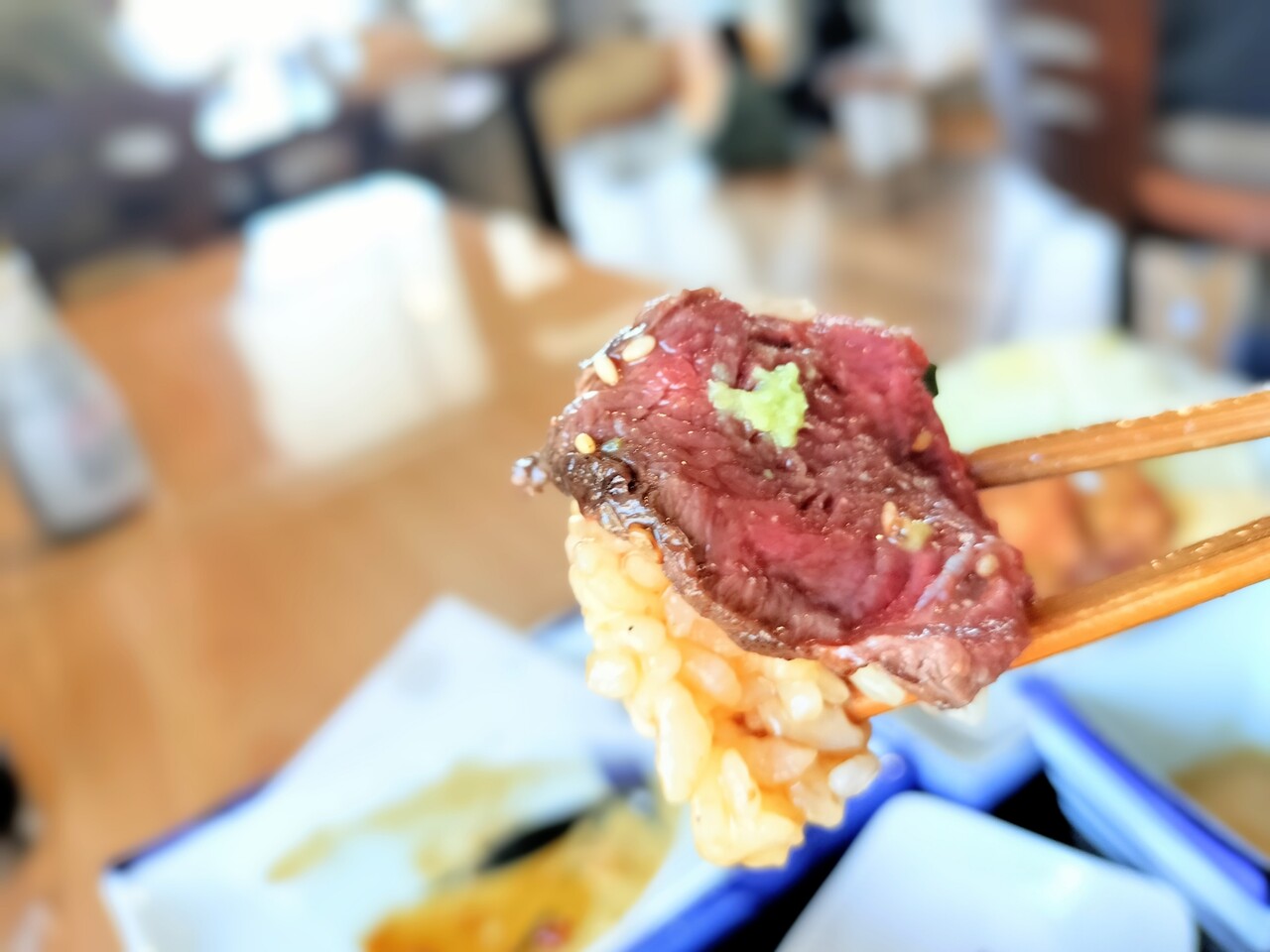 そしてまた エゾシカ肉にわさびを添えて食べ食べ食べ… 食べ進めていき程なくして完食となりました
