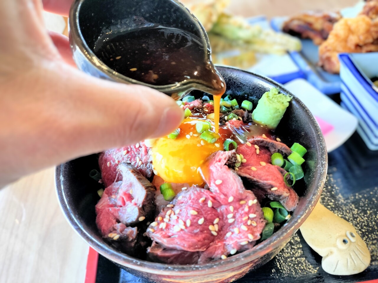 特製タレを丼にかけて