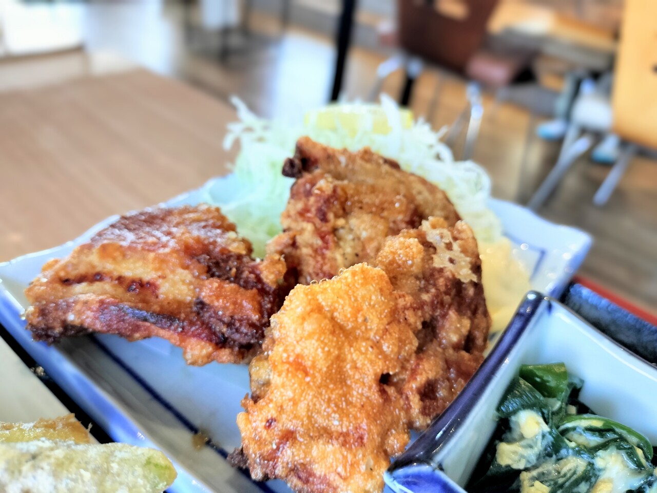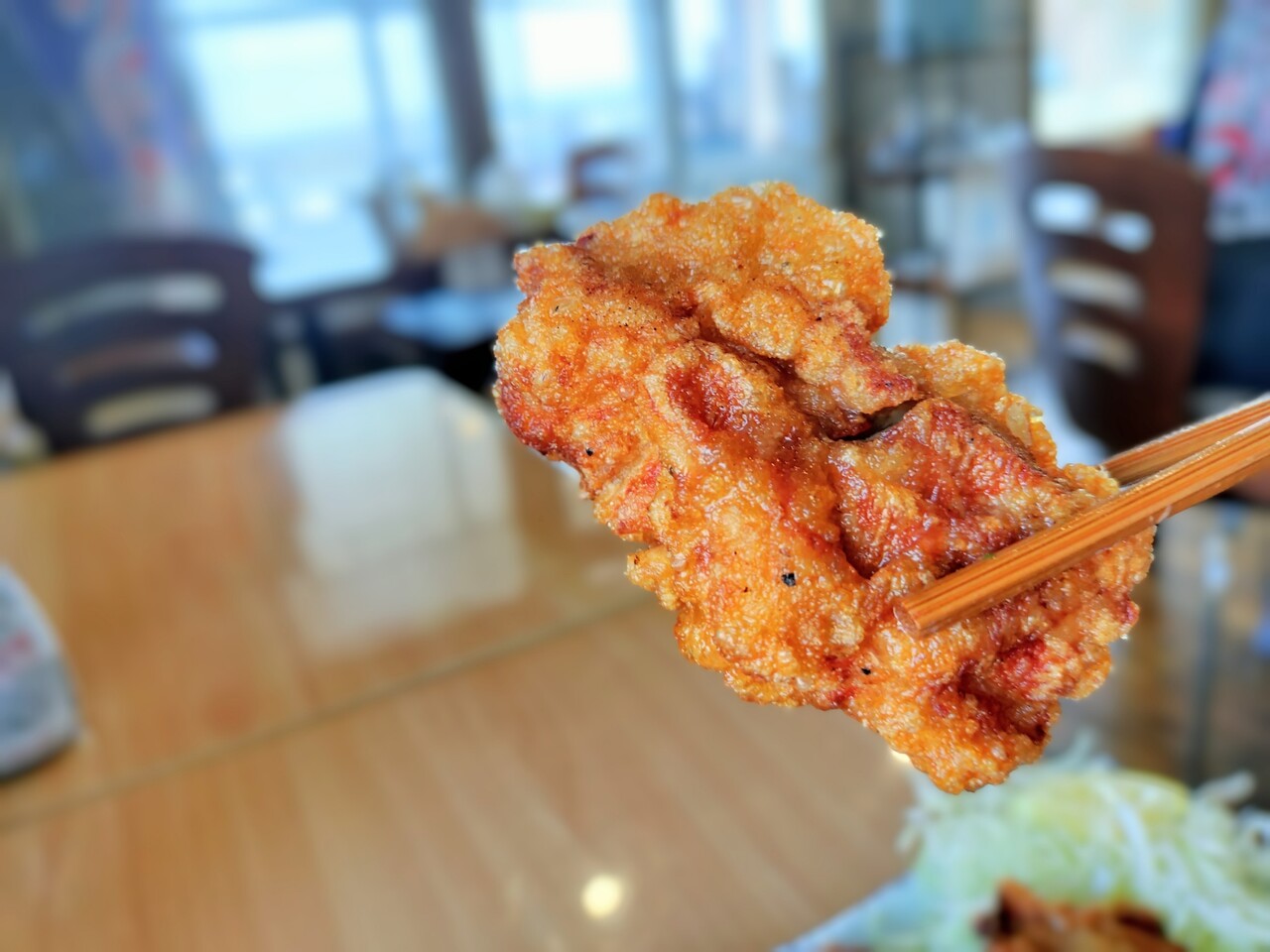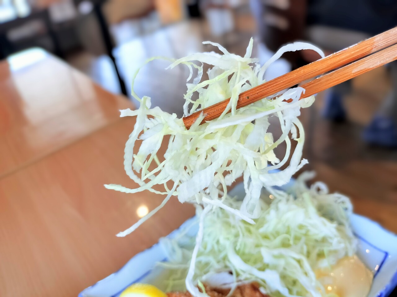 白ザンギの添えてあるキャベツを食べ