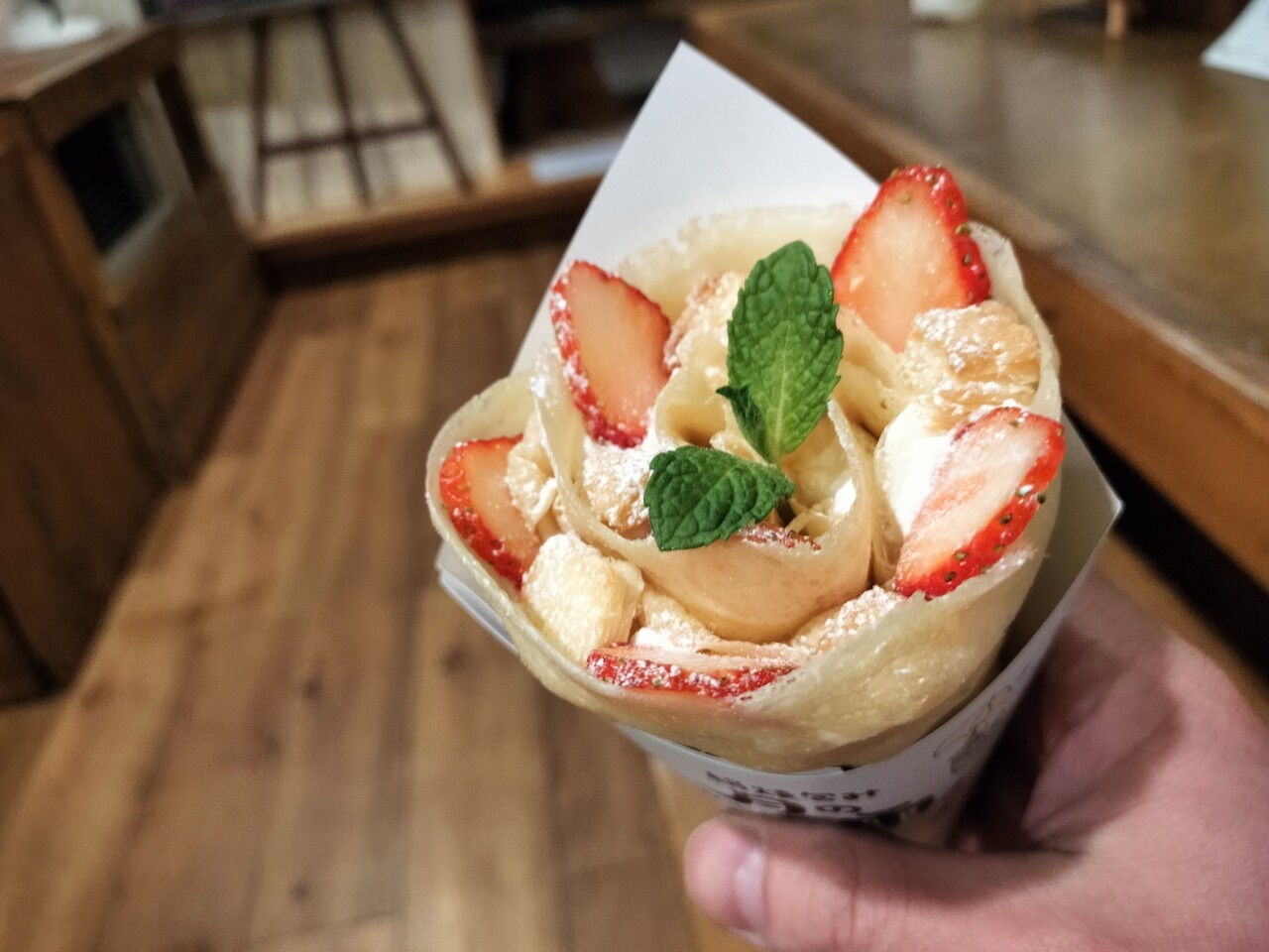 口の周りに生クリームを付けつつ食べるクレープも良いもんだね