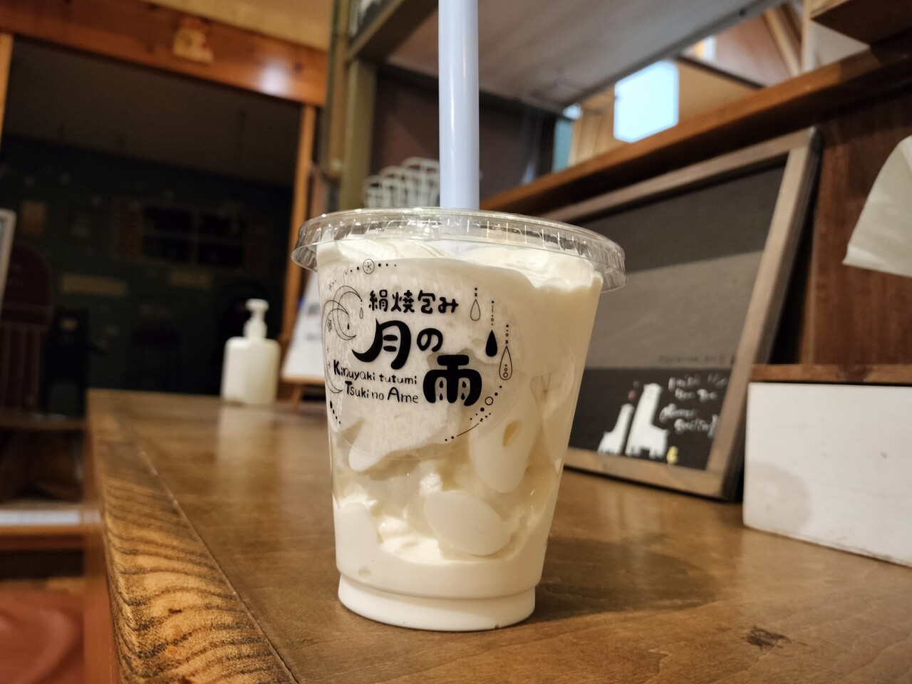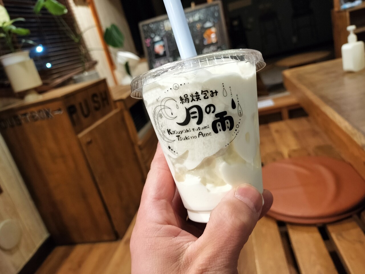 先ずは 手作りレアチーズのシェイクをカウンター越しに受け取ります