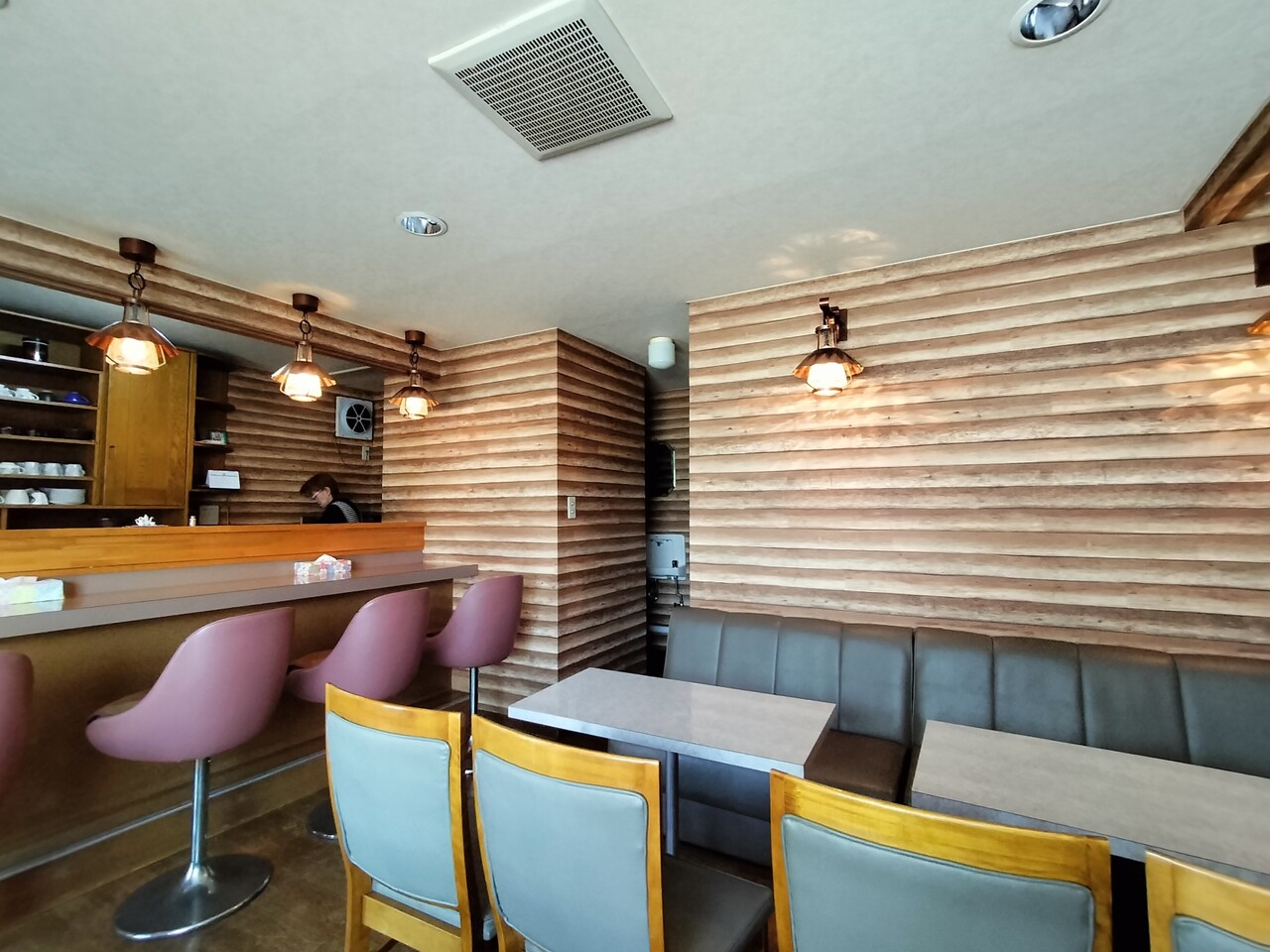 入店するとカウンターとテーブル席があり ウッド調の店内