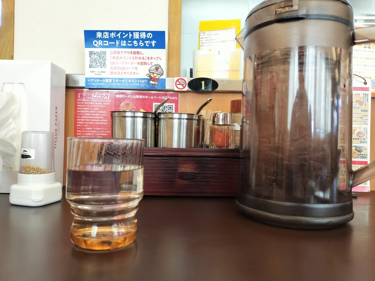 券売機でチケットをGETし カウンター席が空いていたので腰を下ろし お水わセルフって
