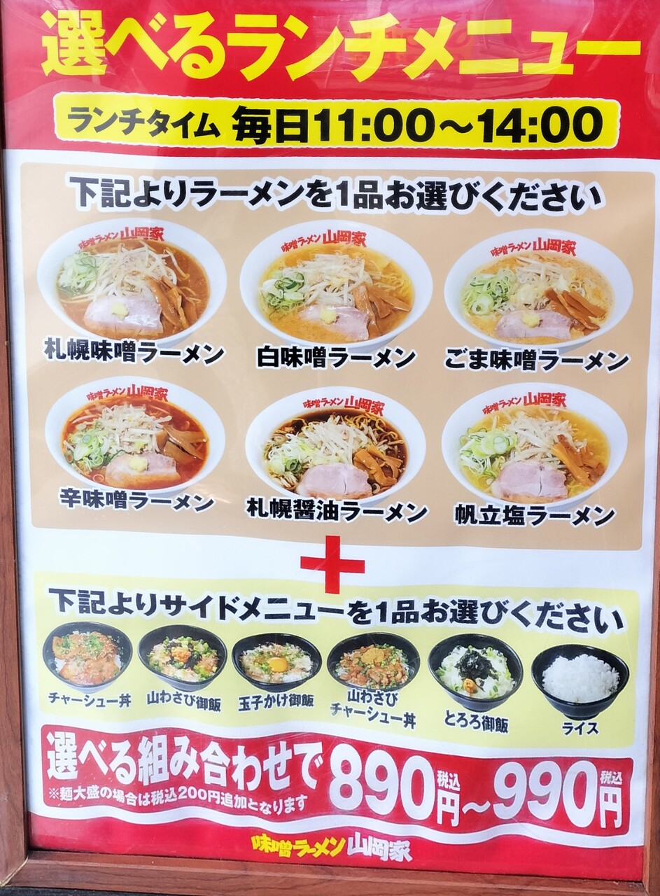 ランチメニューもある様でラーメンにプラスサイドメニューも頼める少しお得な内容となっております