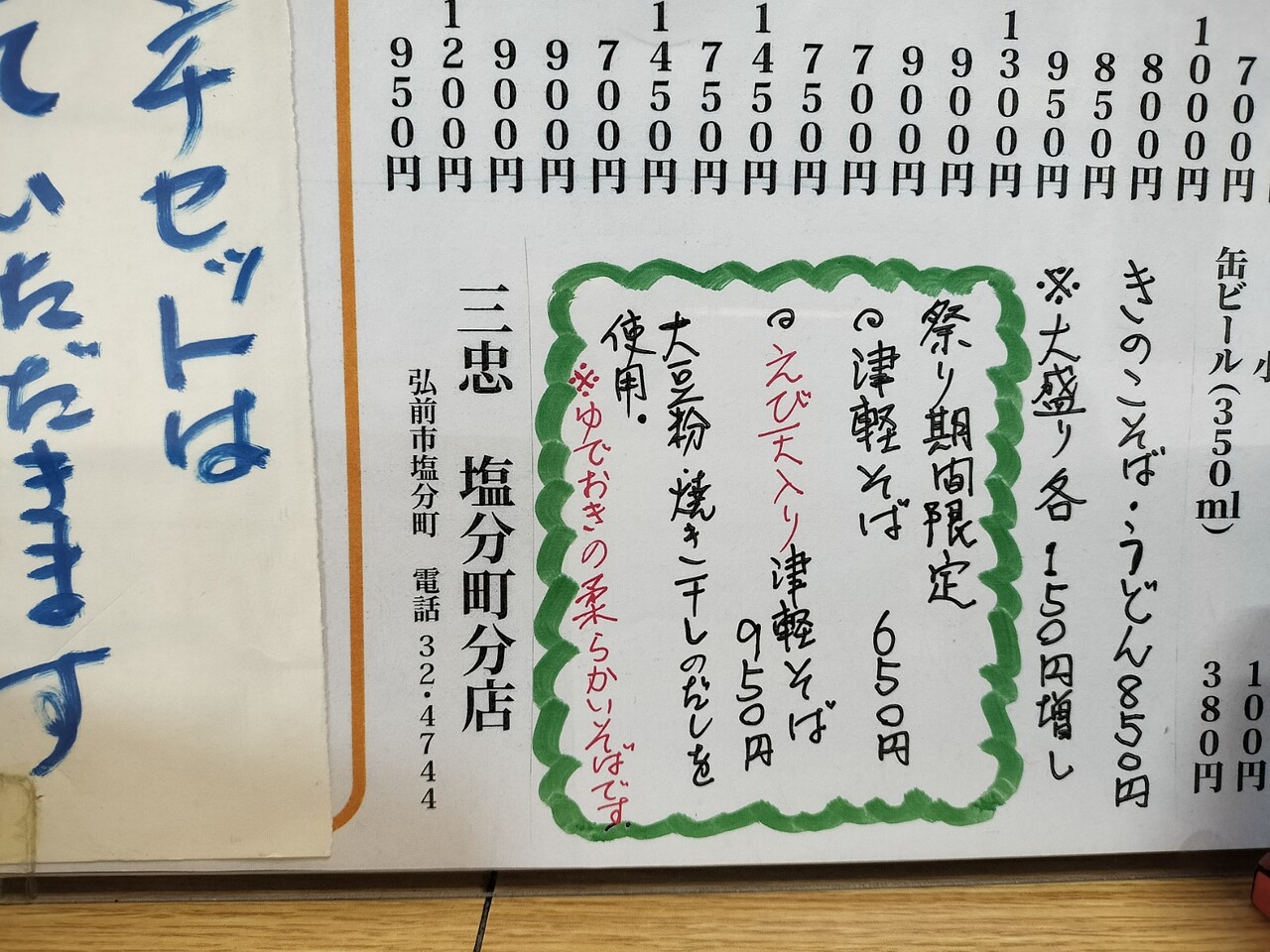 先日青森県の弘前市に桜を観に行っておりまして その流れで何か軽いもの…蕎麦でもと思い今回は弘前公園近くにある 三忠 塩分町分店 さんに伺う事に致しました