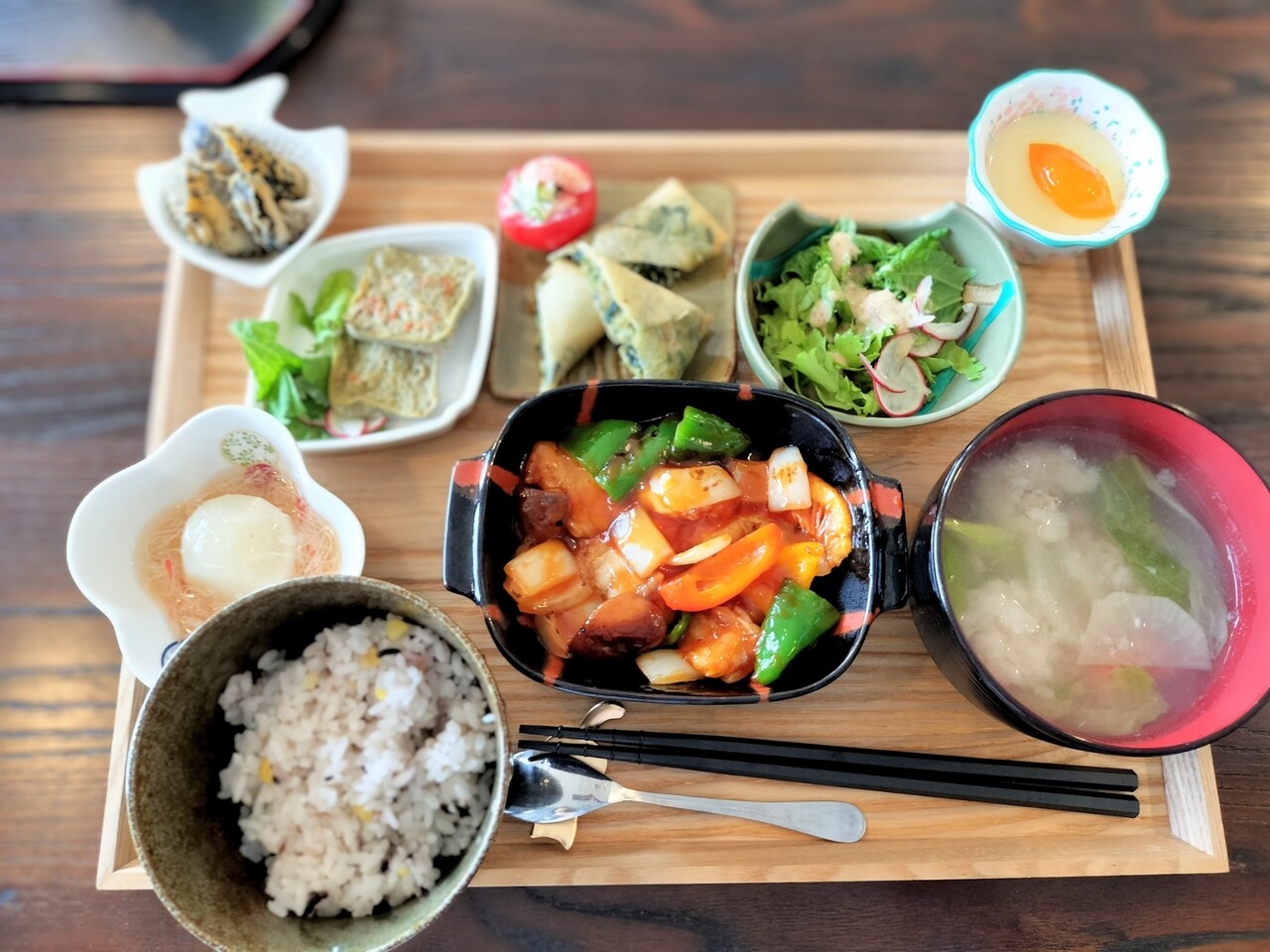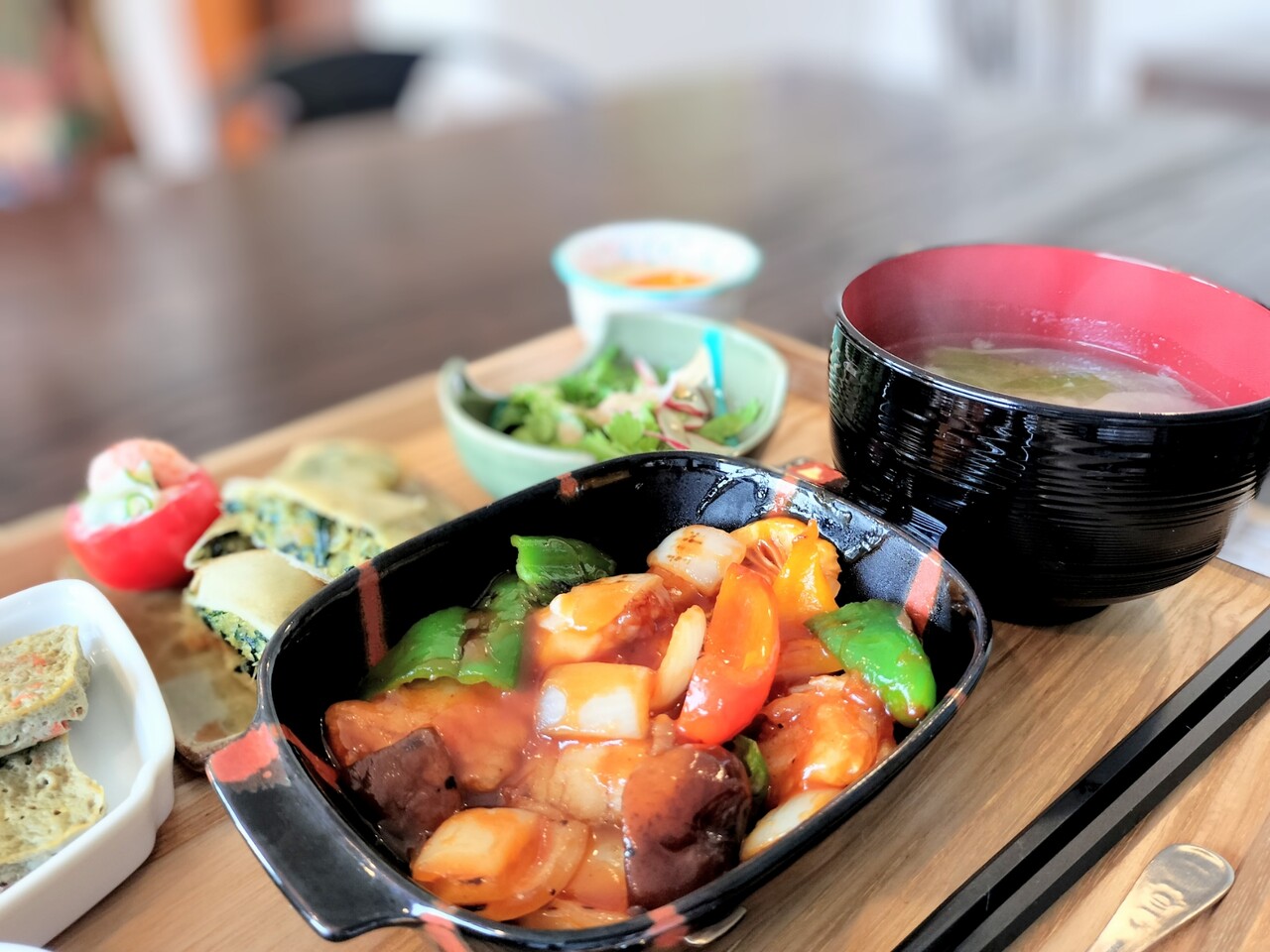 こちらもピーマン、パプリカ、玉ねぎ、椎茸、人参、筍と入っており具沢山で甘酸っぱい味わいが実に美味いね