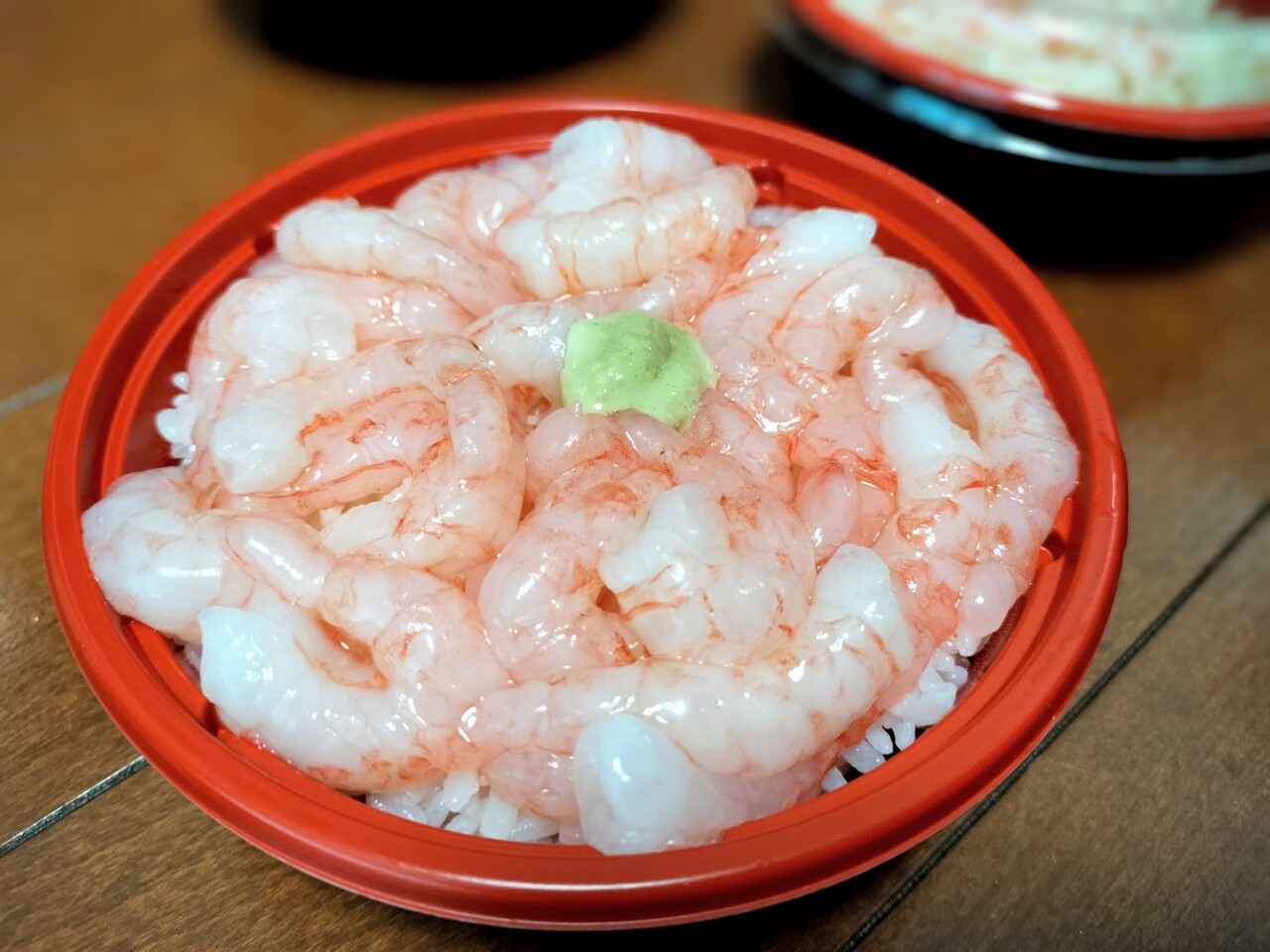 噴火湾産の甘エビがふんだんに使用されたエビ丼… このクオリティ、ボリュームで¥500です…