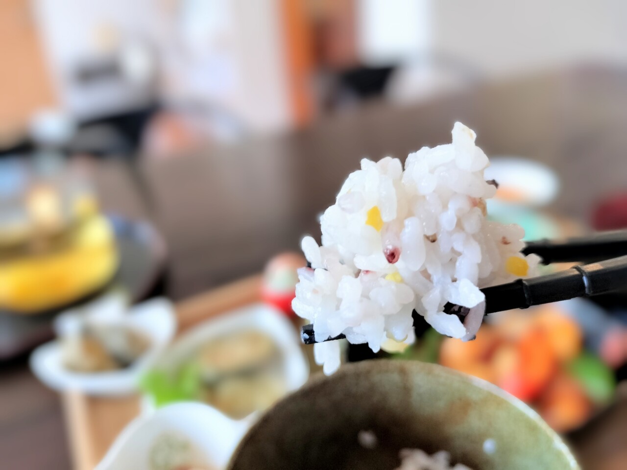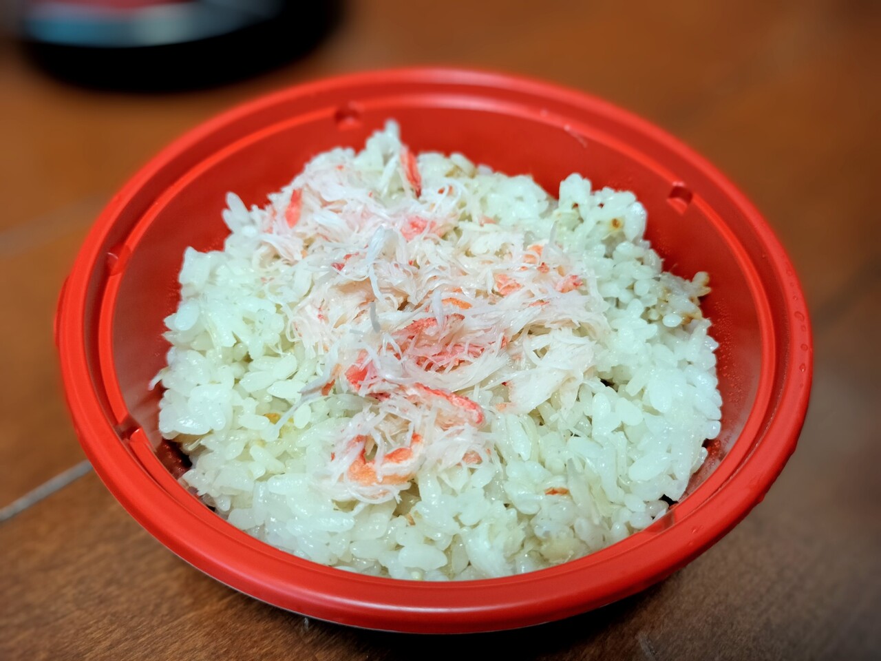 噴火湾産のズワイガニが沢山散りばめられた蟹飯 ¥500…