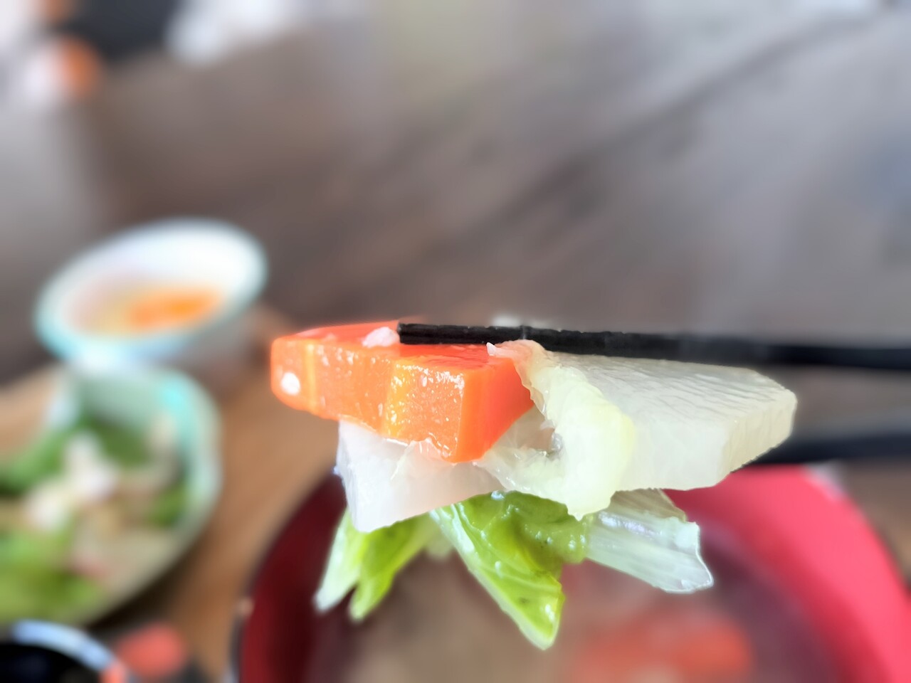 春巻きには蟹が入っており この繊維っぽいのが蟹です