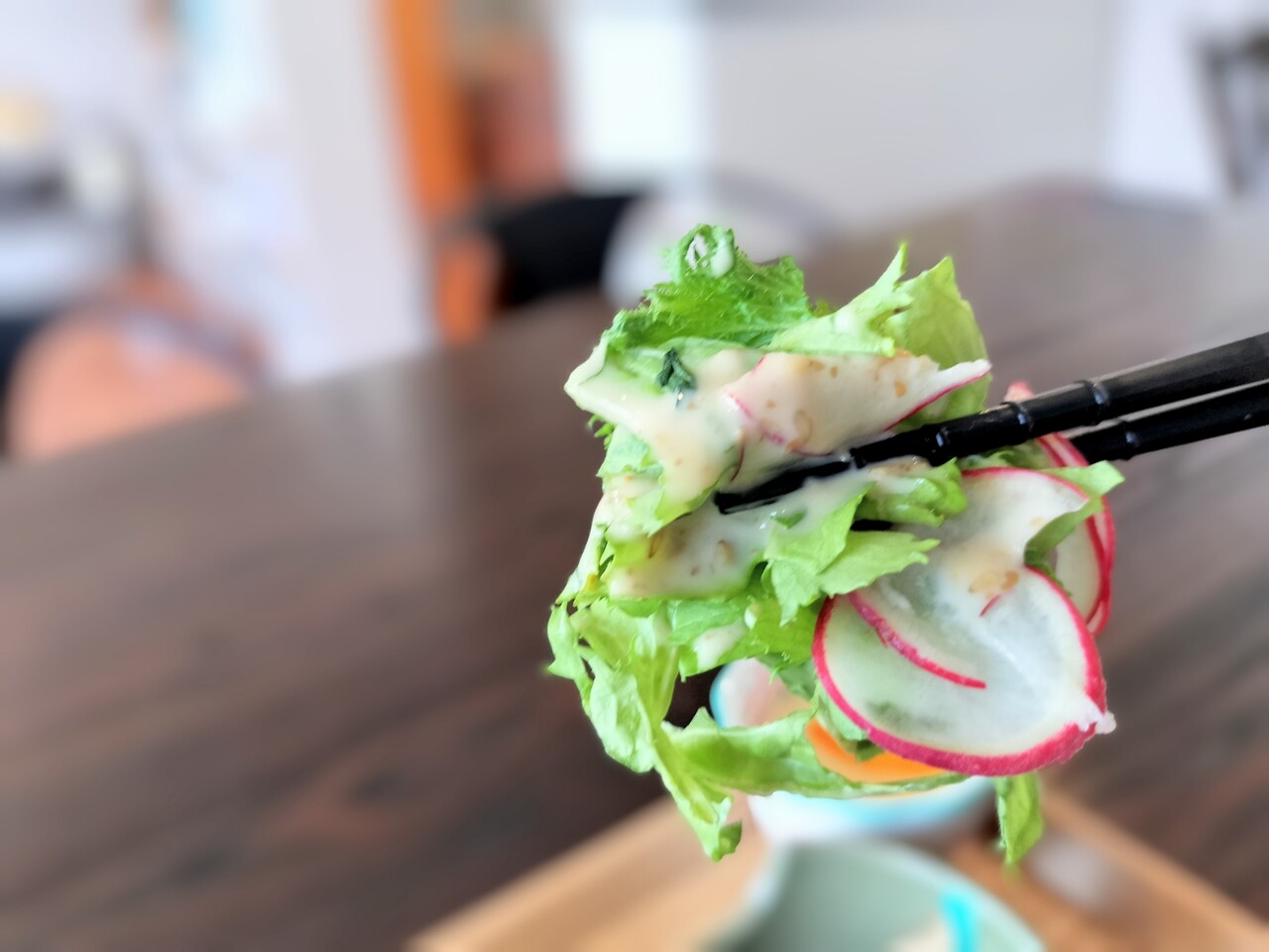 サラダ(ベビーリーフ、ラディッシュ)も挟んで