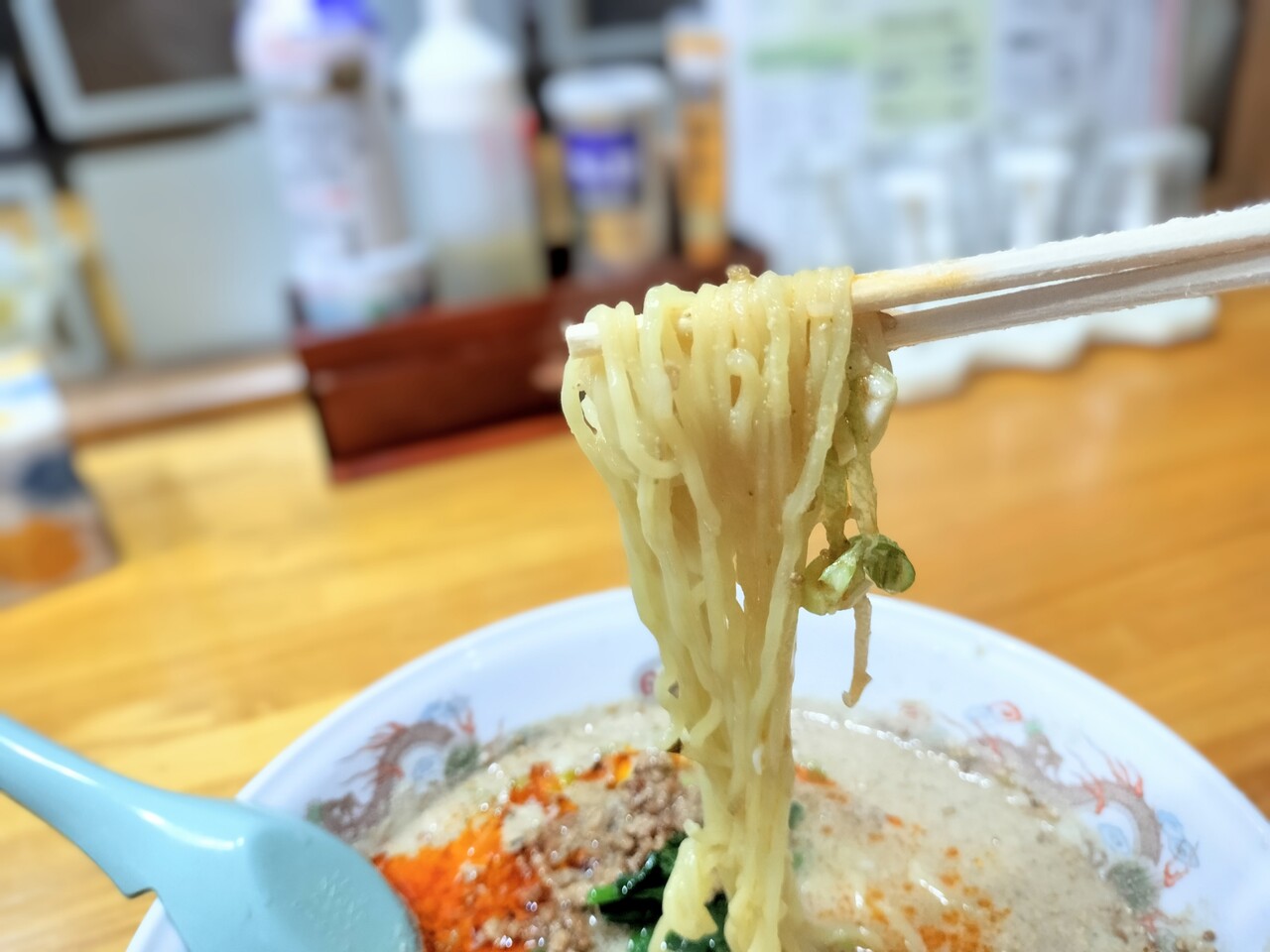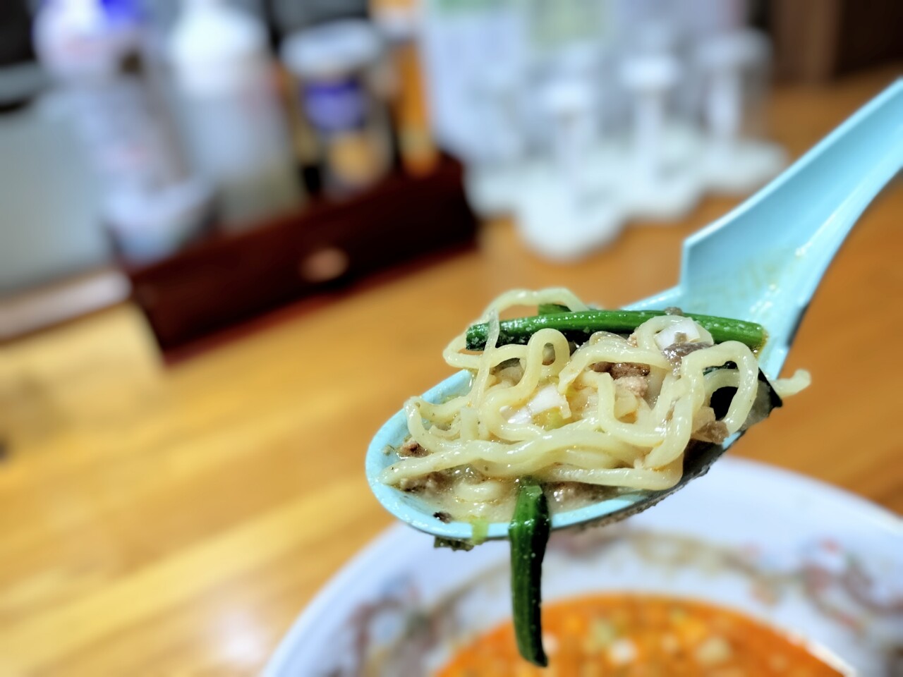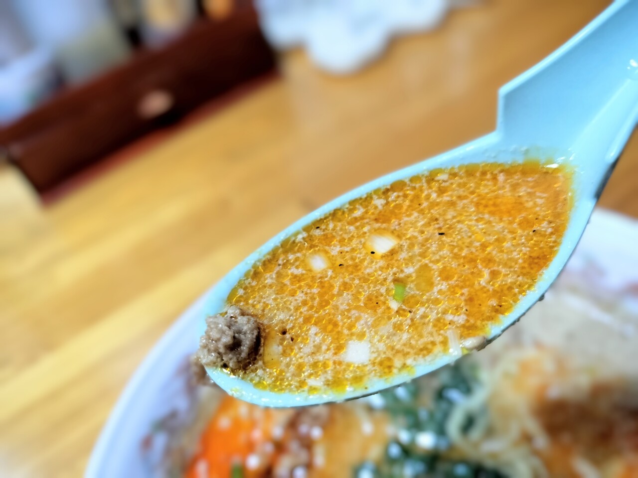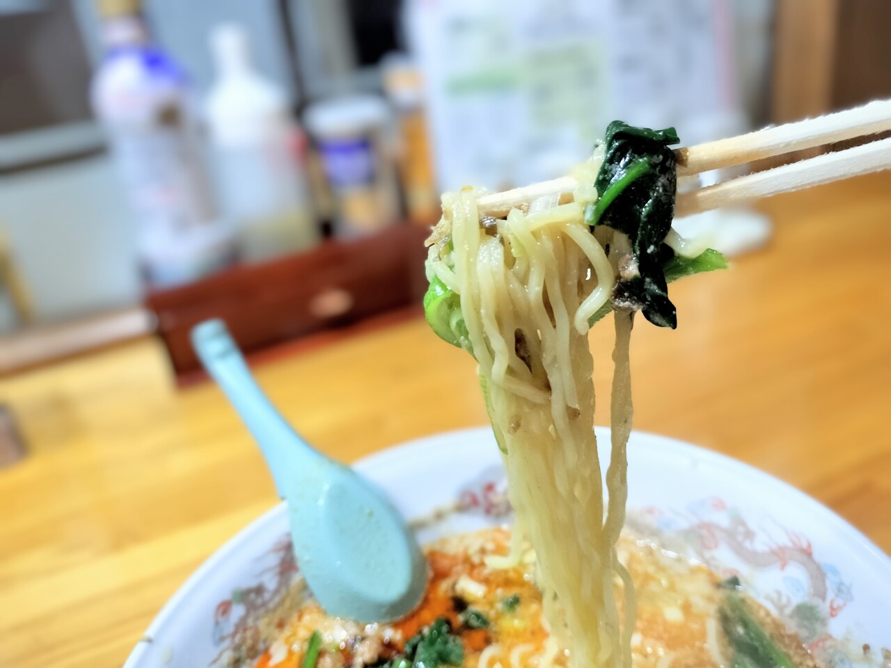 スープを頂くと結構塩っぱい系で辣油由来の辛さが良い感じかも(辛さ耐性はあまり無い)