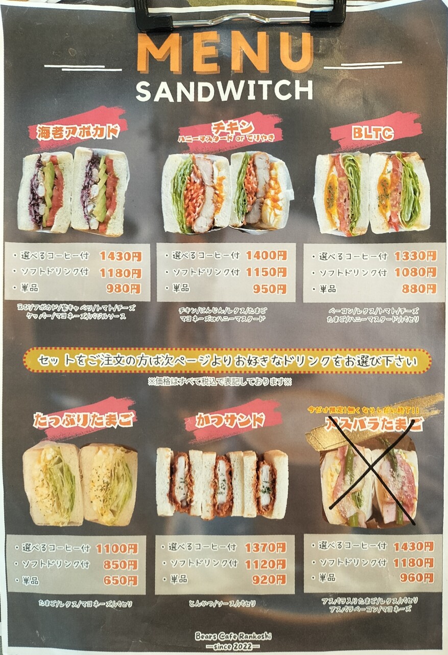 サンドイッチにドリンクにとメニューは御座いますが…
