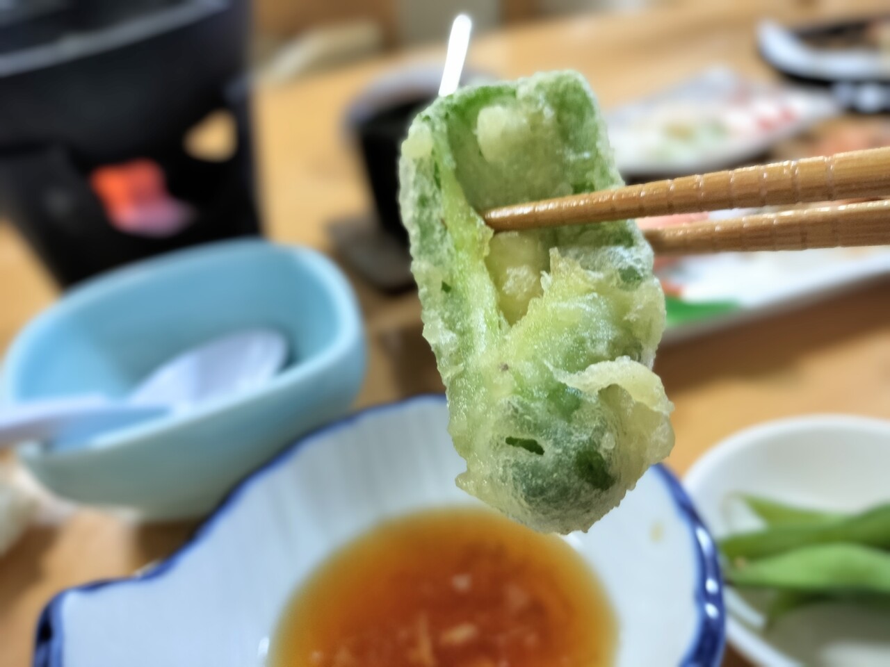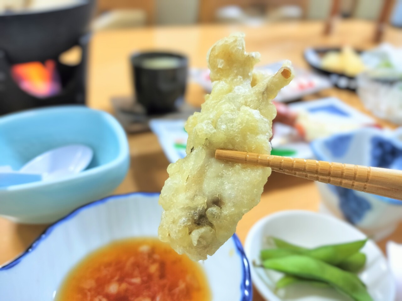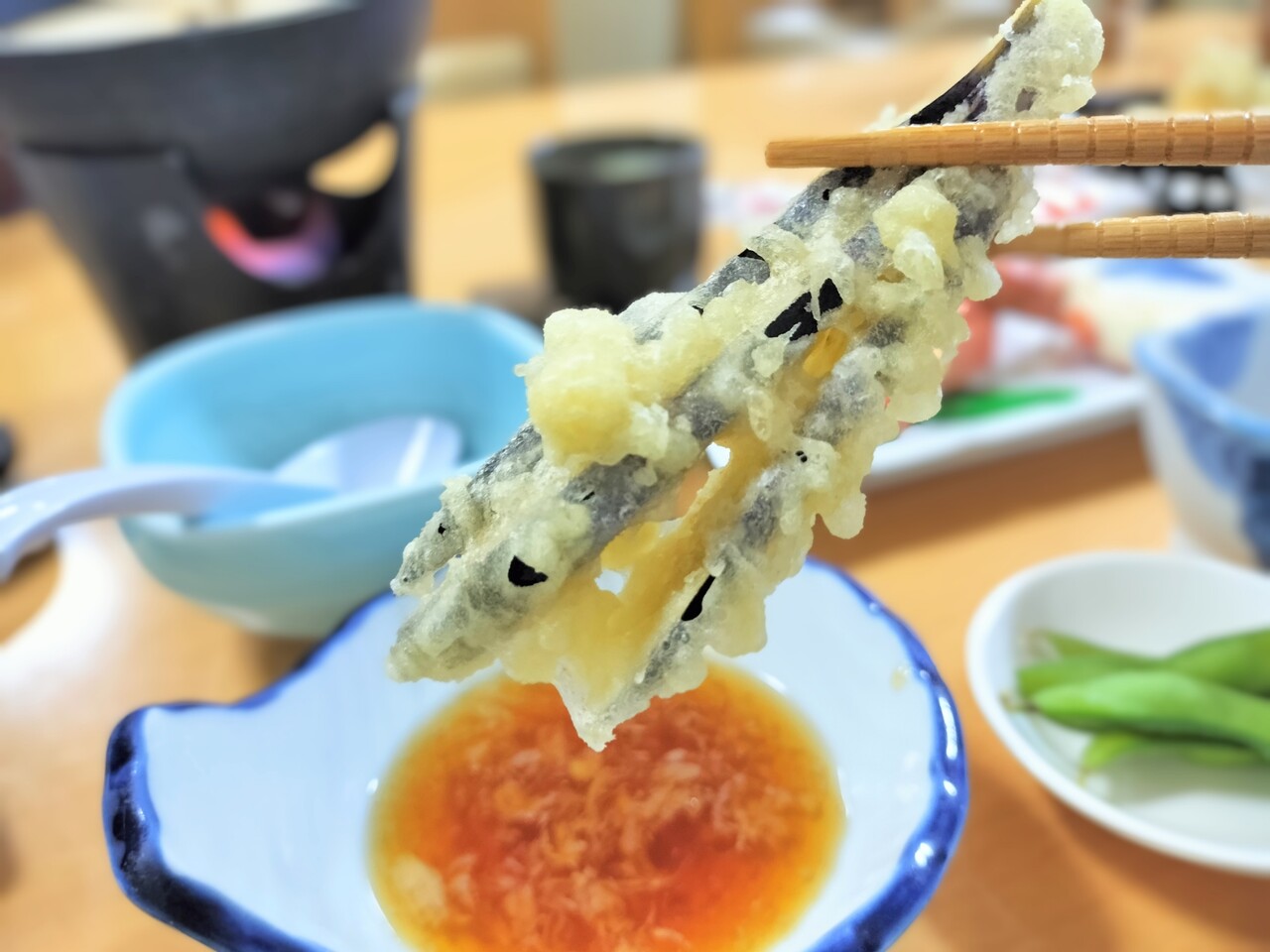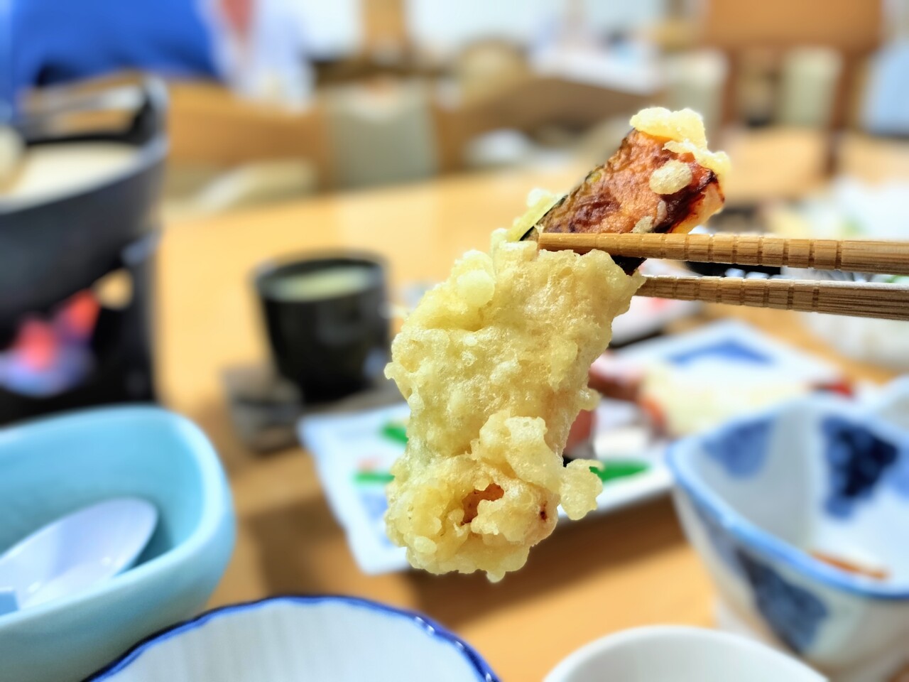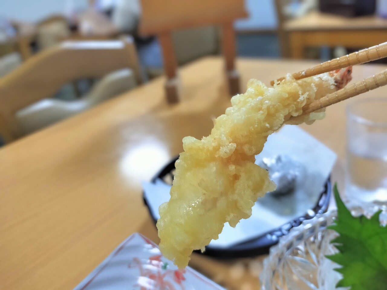 温存していた エビの天ぷらを食べるとぷりぷり食感で複数本食べたいね