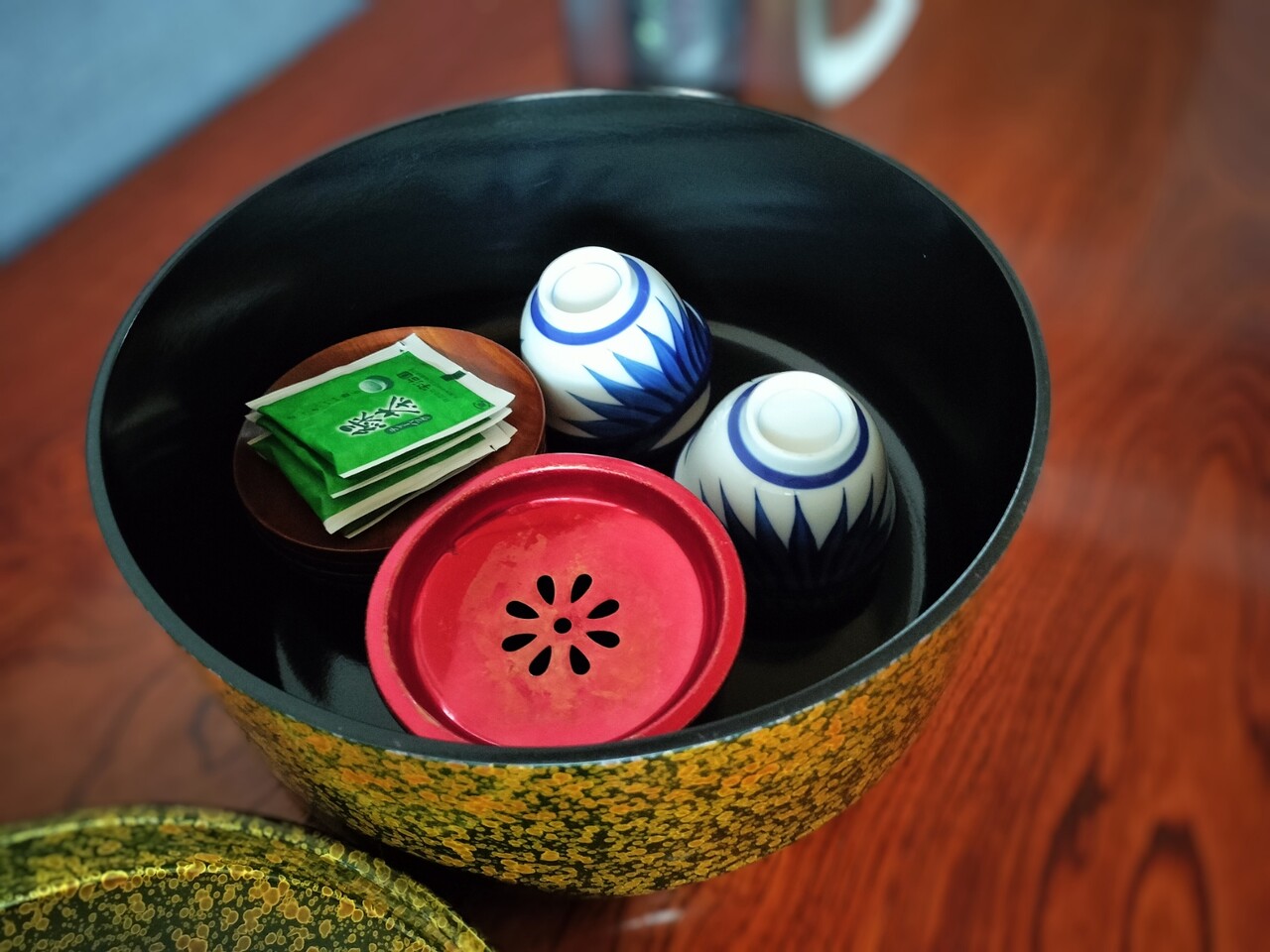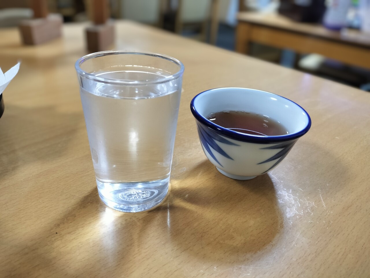 料理はテーブルの上に用意されていたのでお水とお茶をセルフって