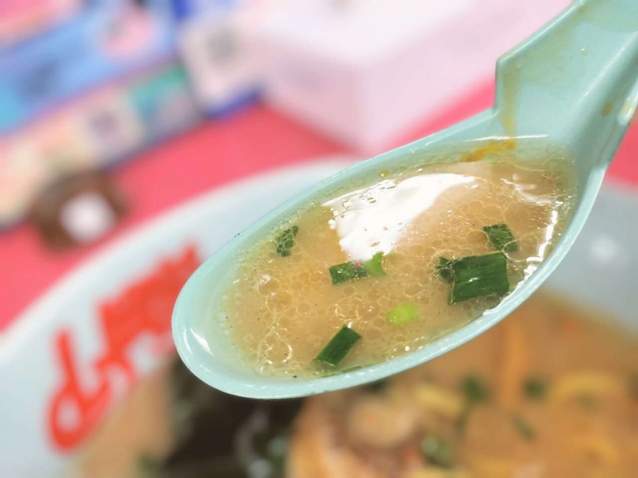 スープを飲むと ホタテの旨みが含んだ塩トンコツスープが秀逸で一度飲み始めると止まらんな…