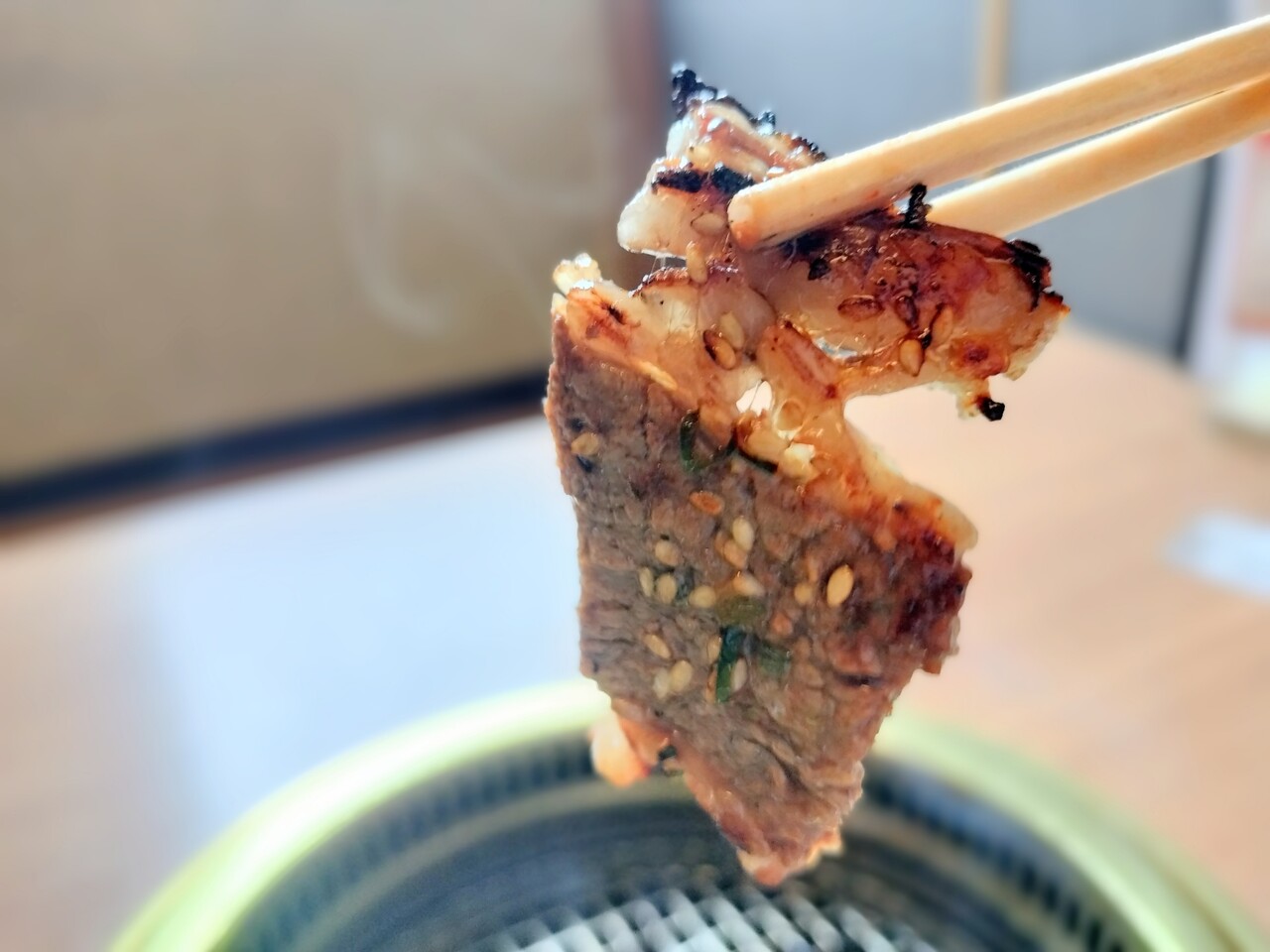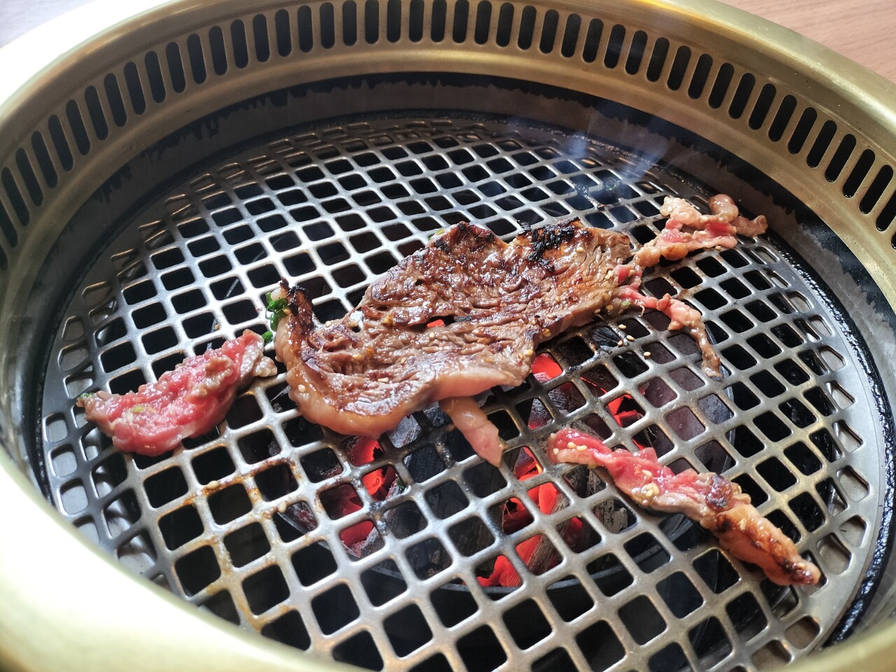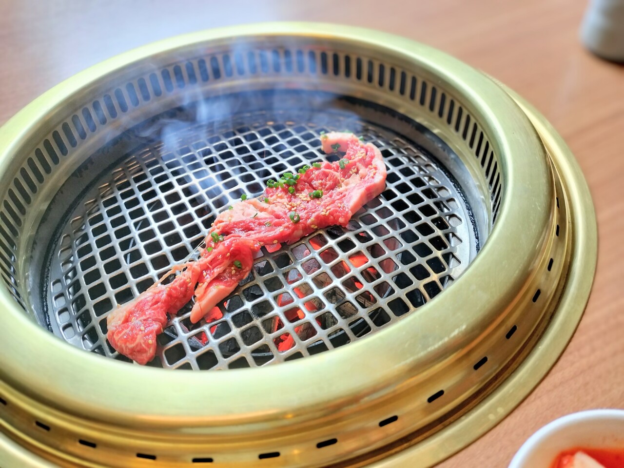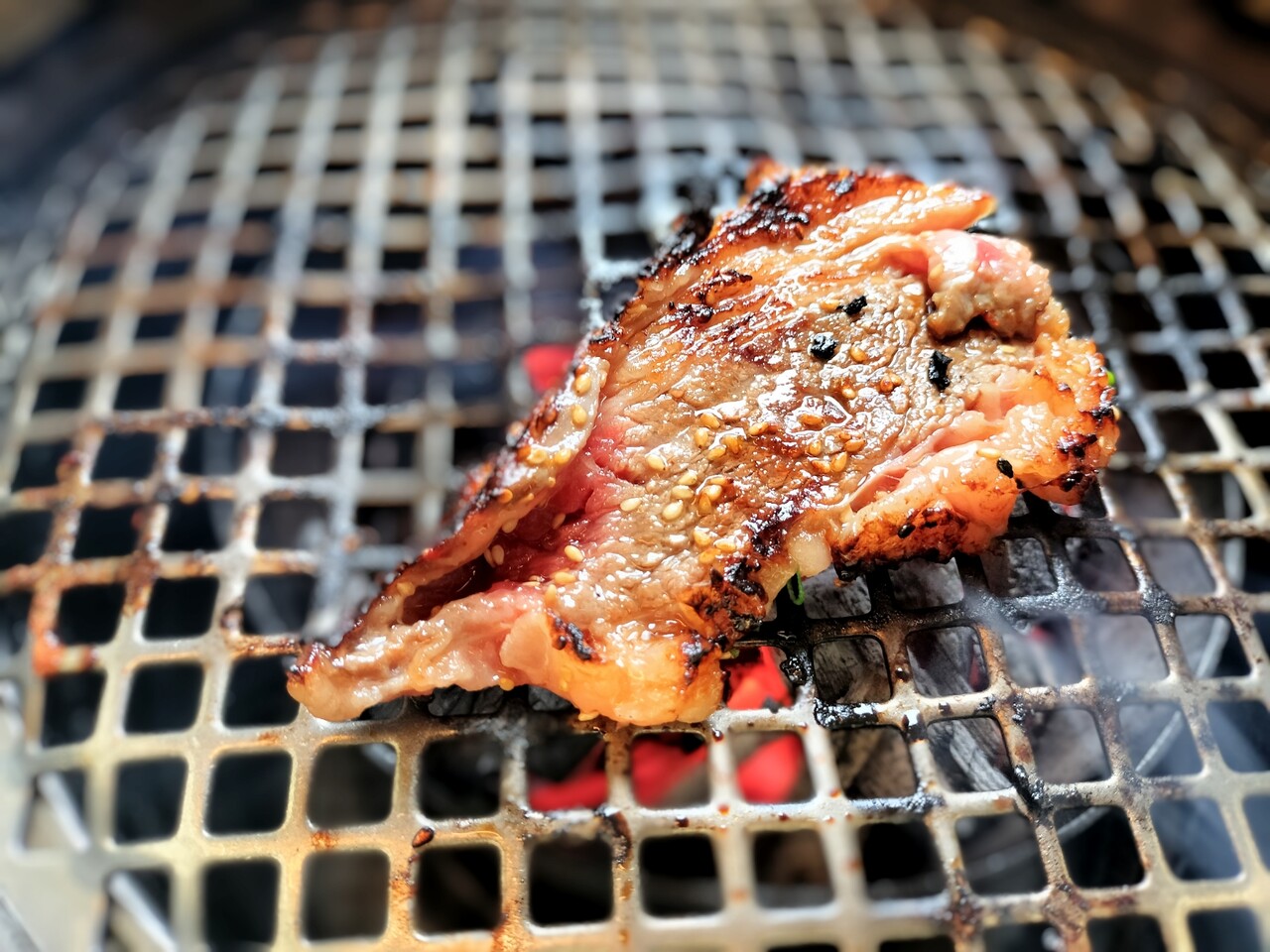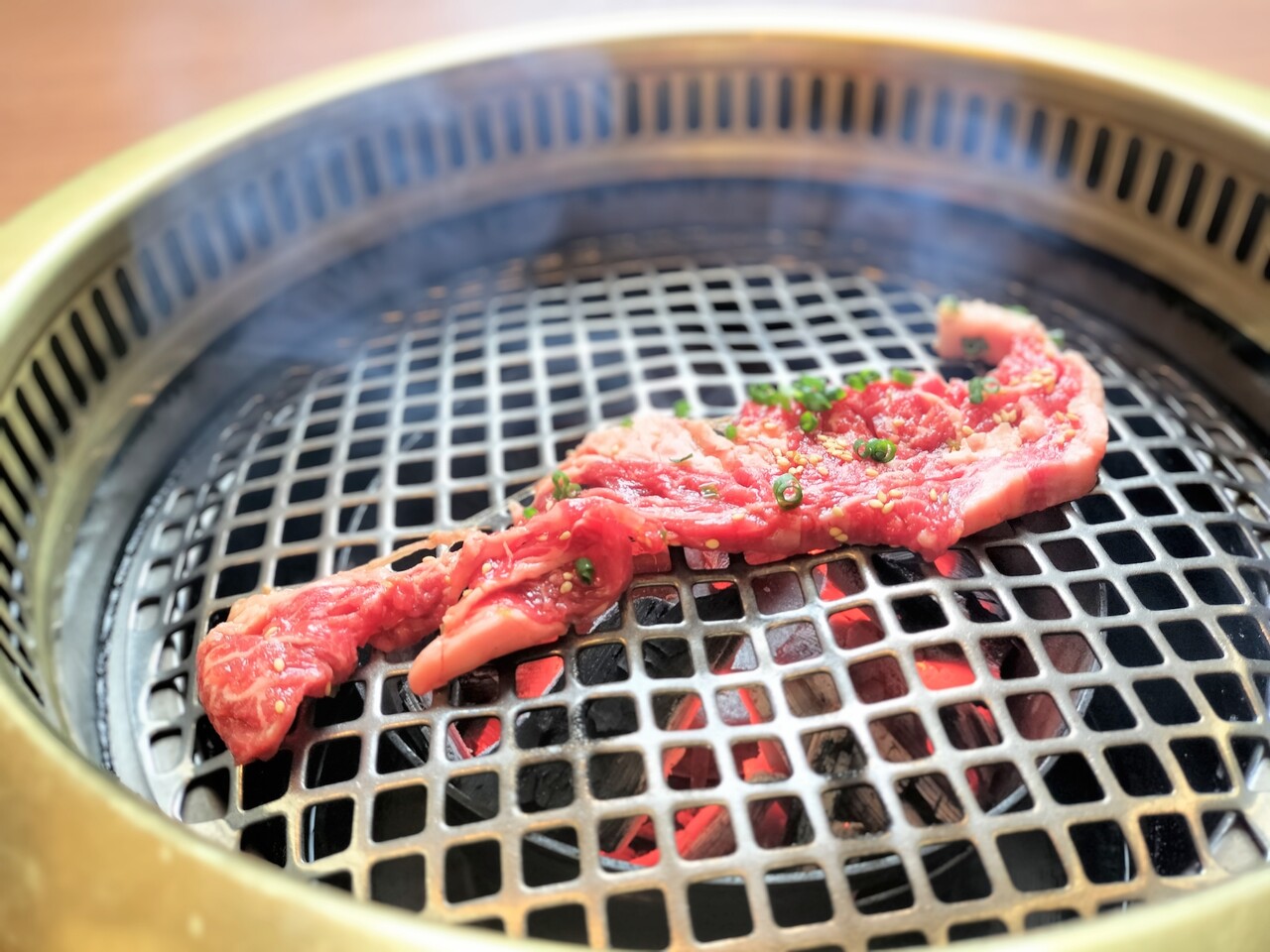 熱せられた網の上に肉を置くとジュー…っと音と 焼ける肉の香りが堪らない